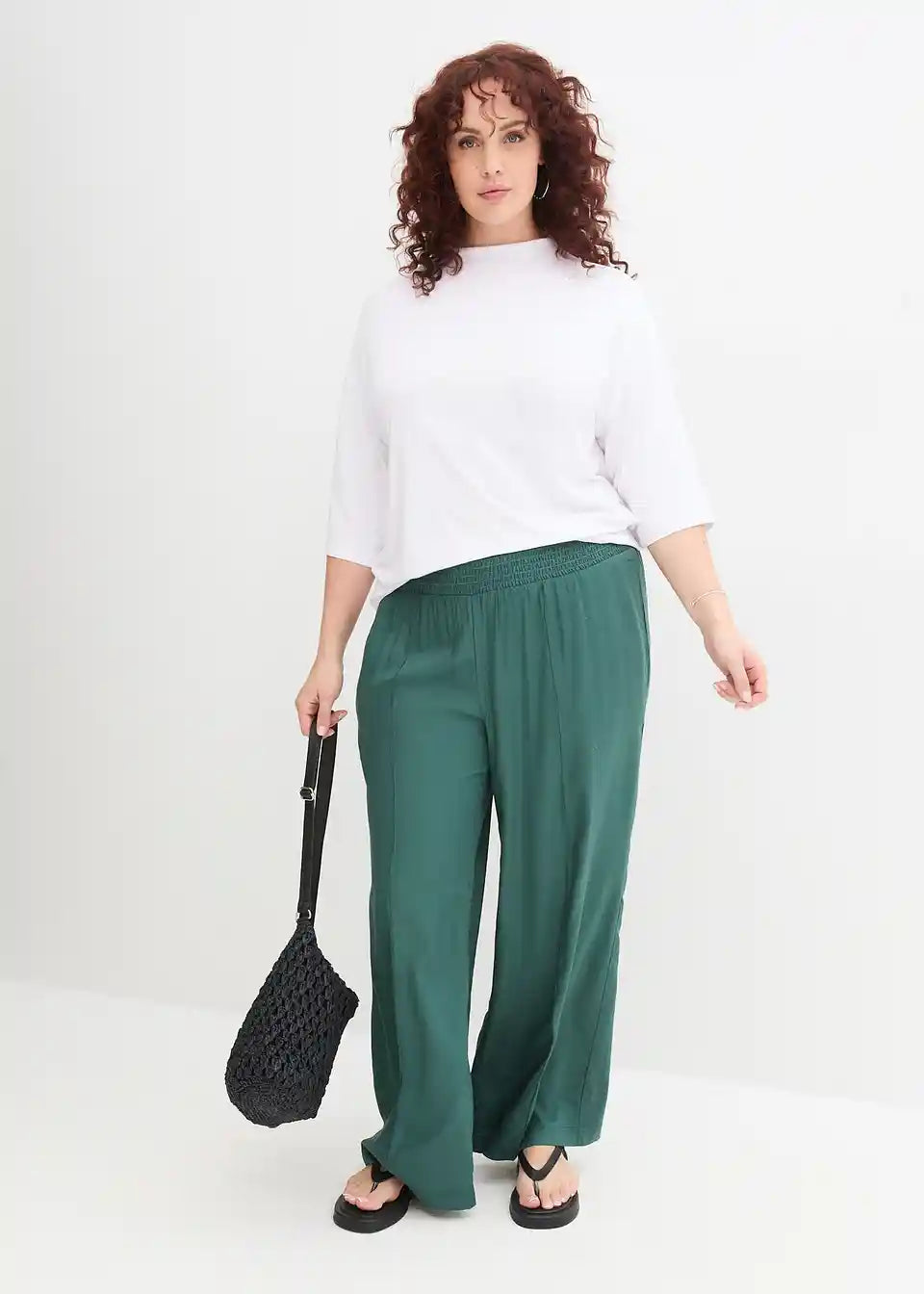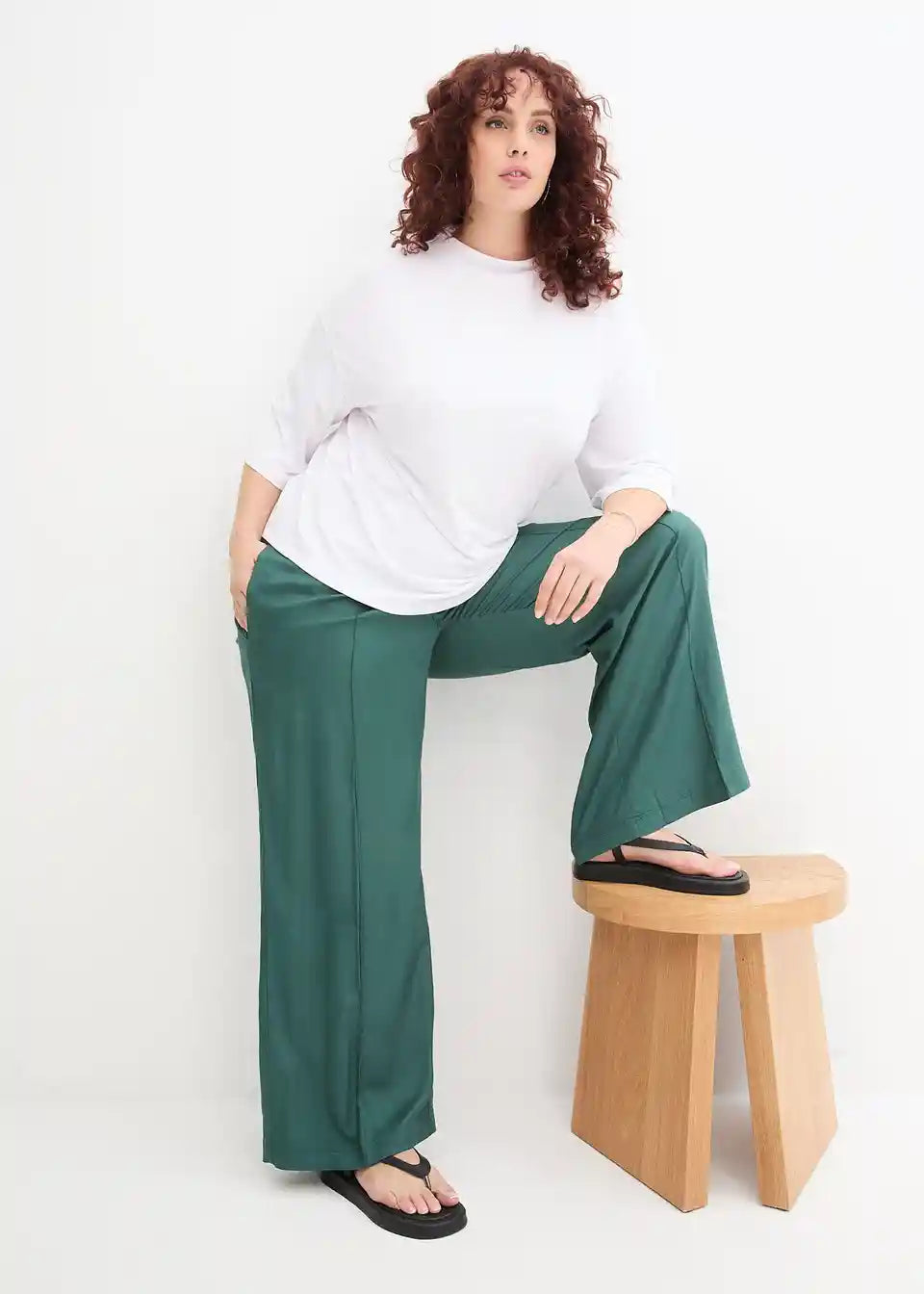 Moderne oversized hlače od elastične viskoze s elegantnim naborom na prednjem dijelu struka