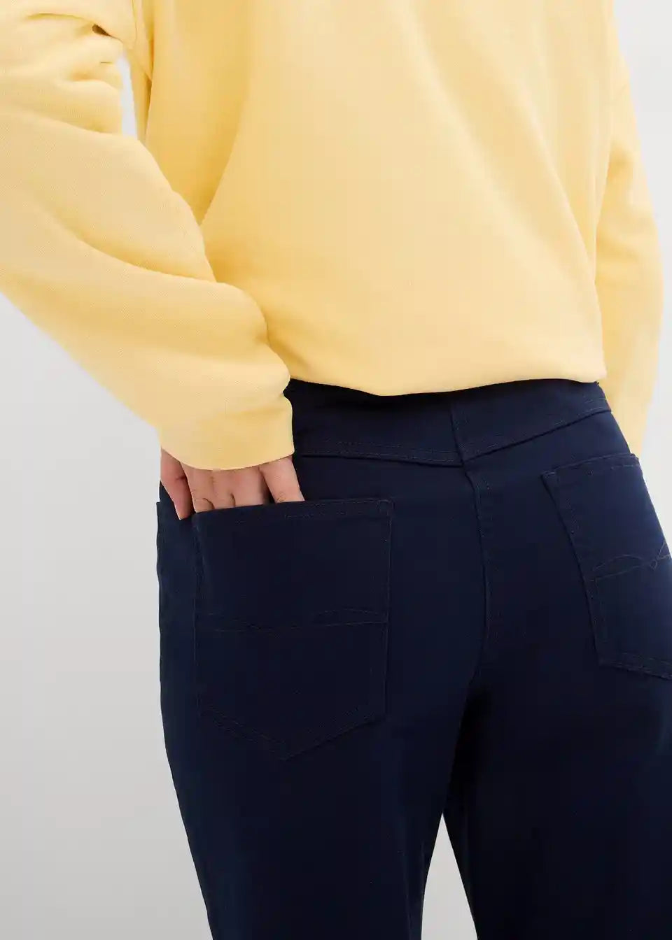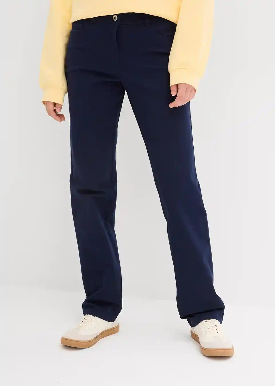 Zahvaljujući ugrađenom elastanu i udobnom pojasu, hlače s elastičnim vlaknima marke bpc selection vrlo su udobne. Bilo elegantne ili ležerne, svojim nenametljivim dizajnom lako se kombiniraju s različitim outfitima u stilu s 5 džepova. Hlače su dostupne u dvije duljine za savršeno pristajanje. Ravno krojene nogavice i kroj koji prati liniju tijela decentno naglašavaju noge.