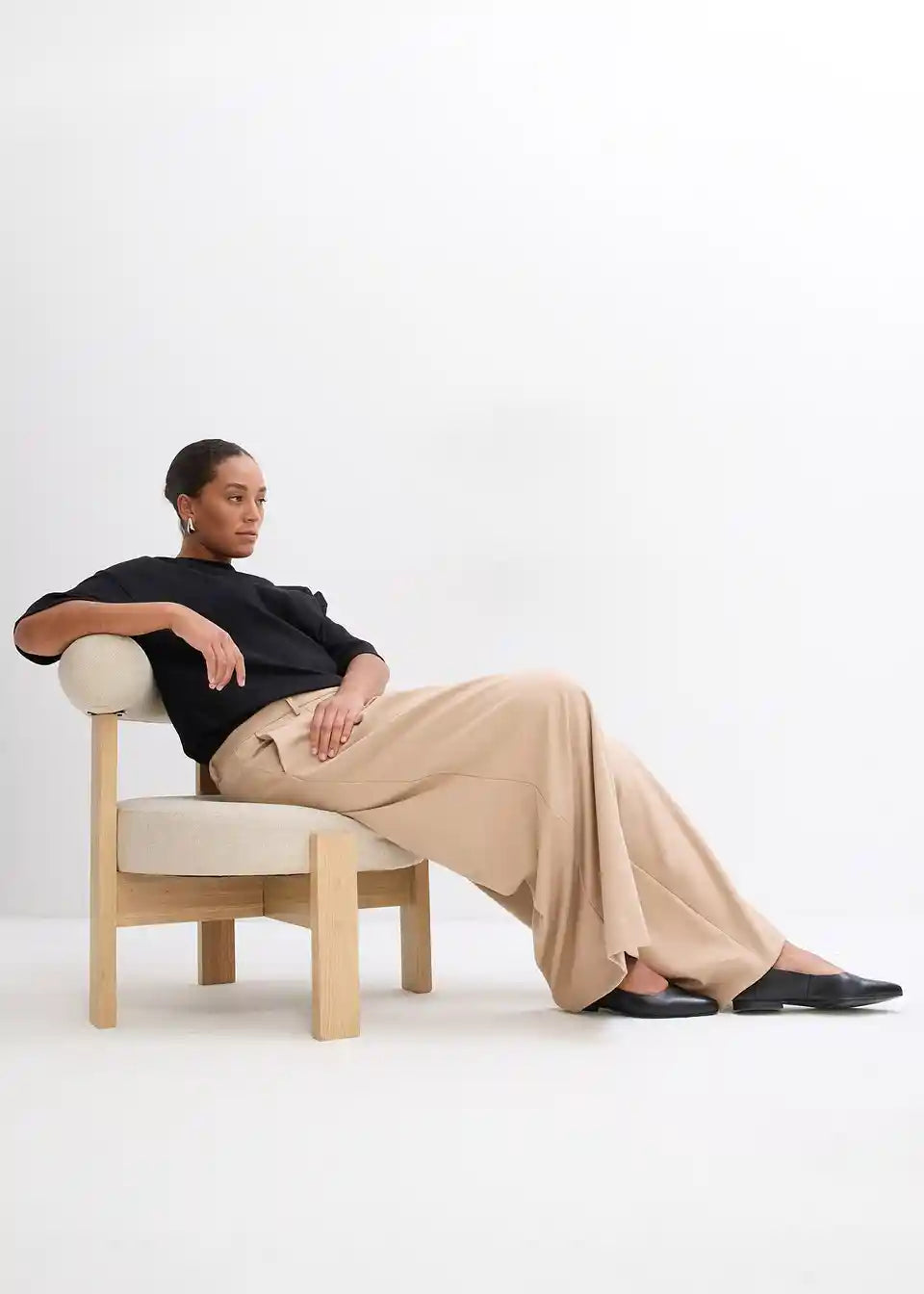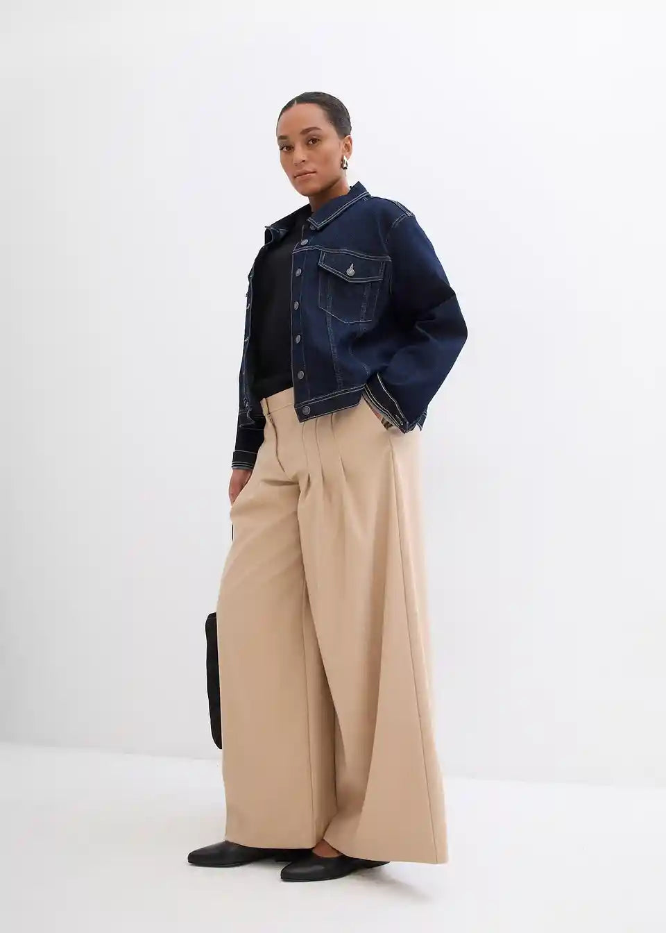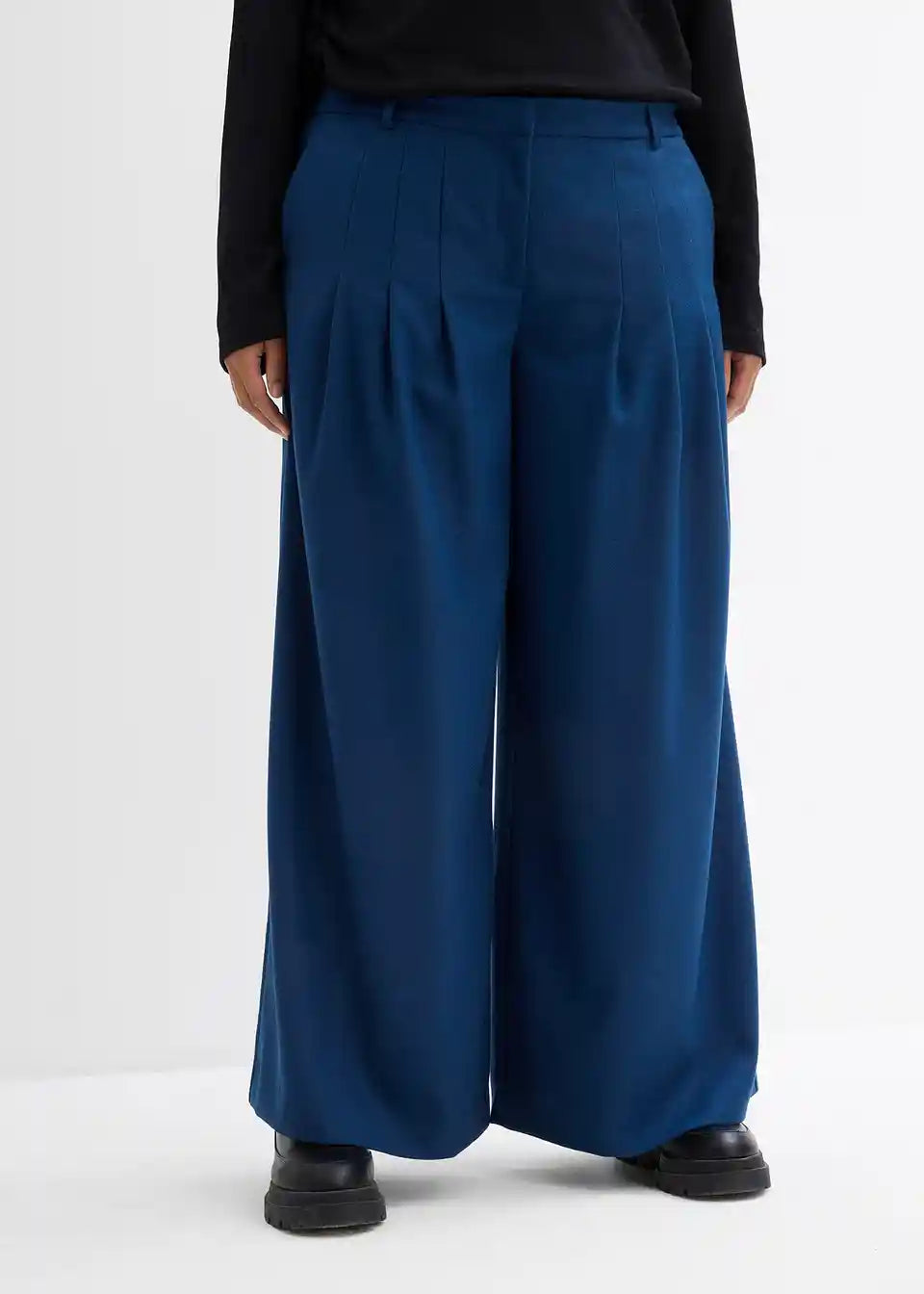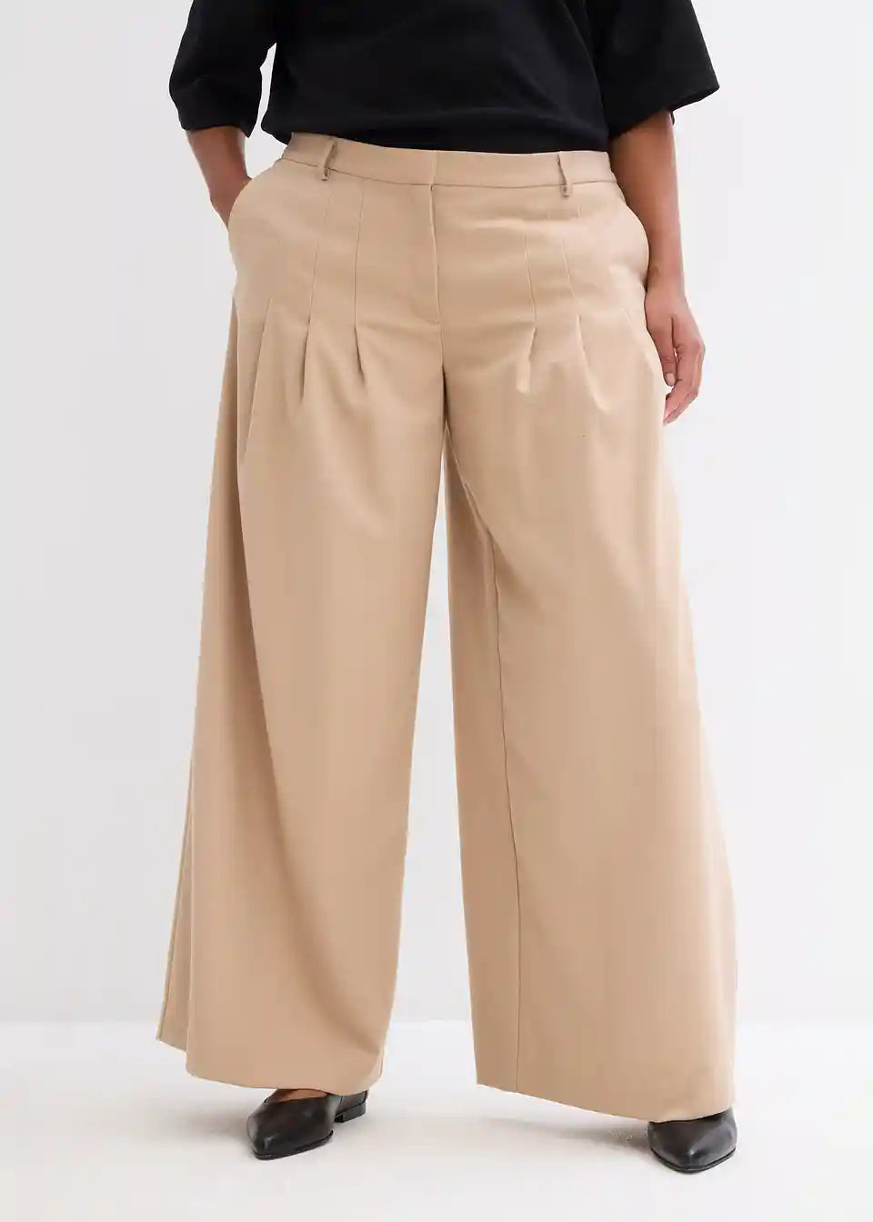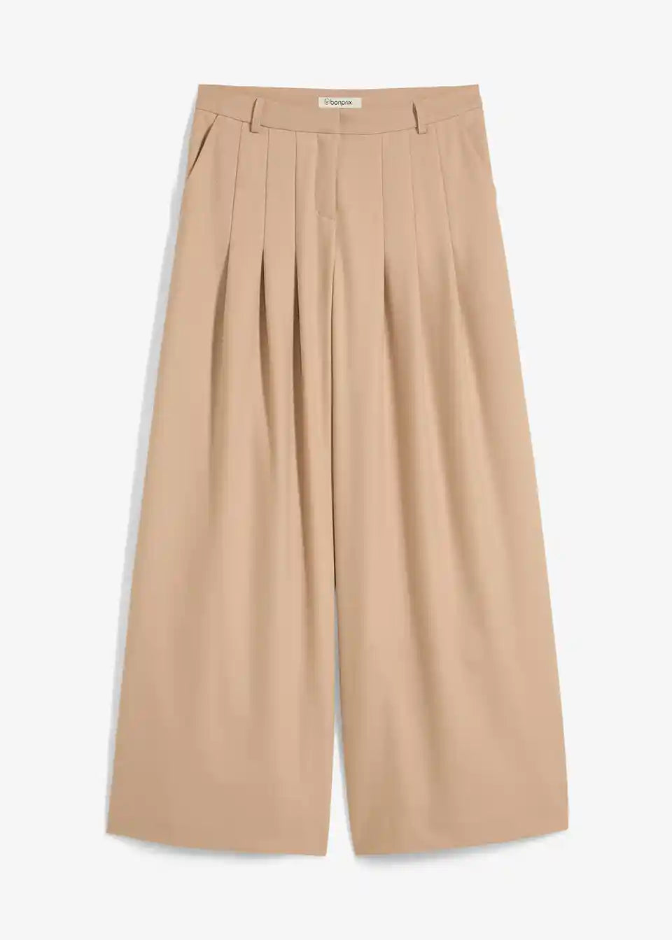 Hlače s naborima, ležernog kroja, s ušicima sprijeda i širokim nogavicama
