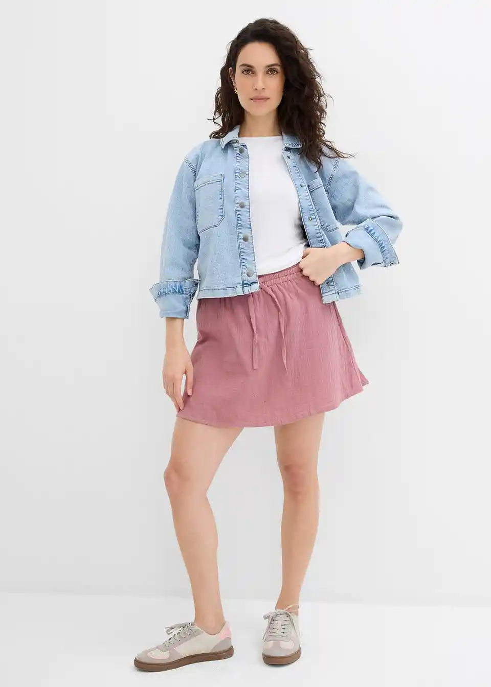 Hlače-suknja od čiste pamuka. S poluvisokim strukom i vezicom.
