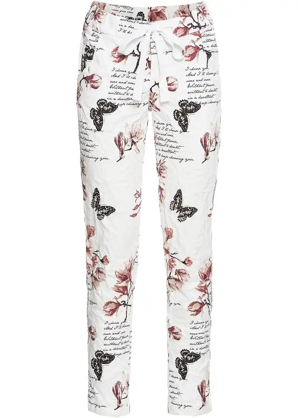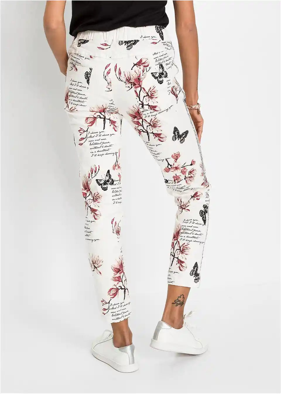 Ove cool hlače s printom u Loose fit kroju oduševljavaju brojnim upečatljivim detaljima. Model koji seže do gležnja ima dva bočna džepa. Na pojasu se može vezati uska mašna. Modni naglasci ovog izuzetnog komada garderobe uključuju detaljno izrađeni cjeloviti print i bočne šavove ukrašene malim, sjajnim šljokicama.