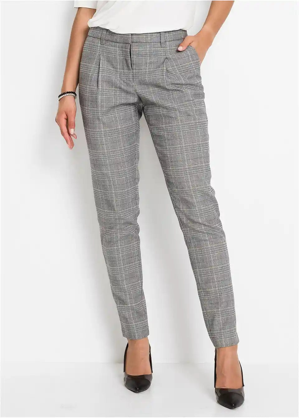 Moderne karirane poslovne hlače s bočnim džepovima i prekrasnim kariranim uzorkom.