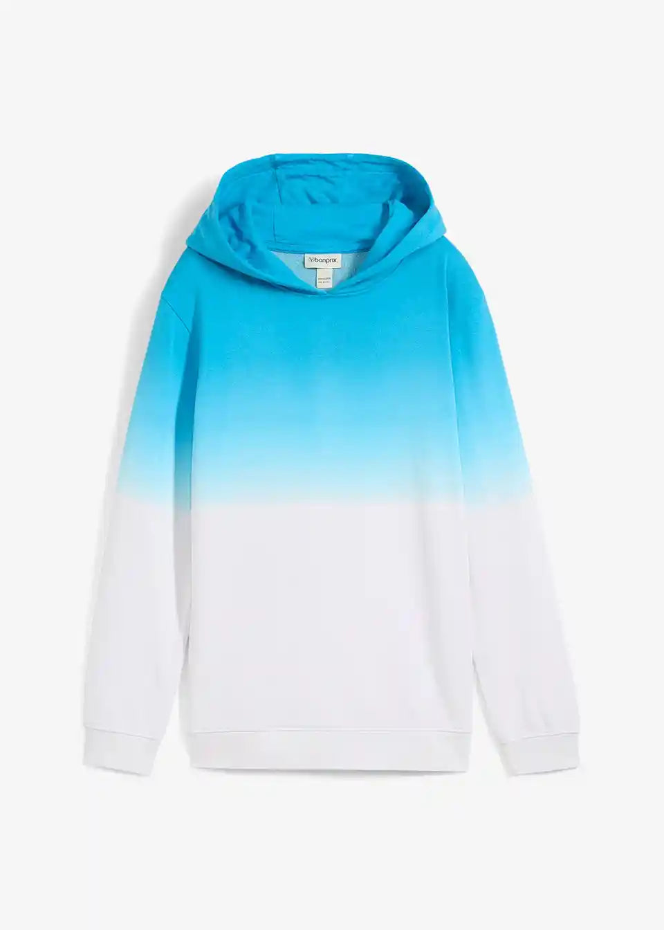 Prekrasan Hoodie s gradijentom boja i rebrastim manšetama, svaki komad je jedinstven.