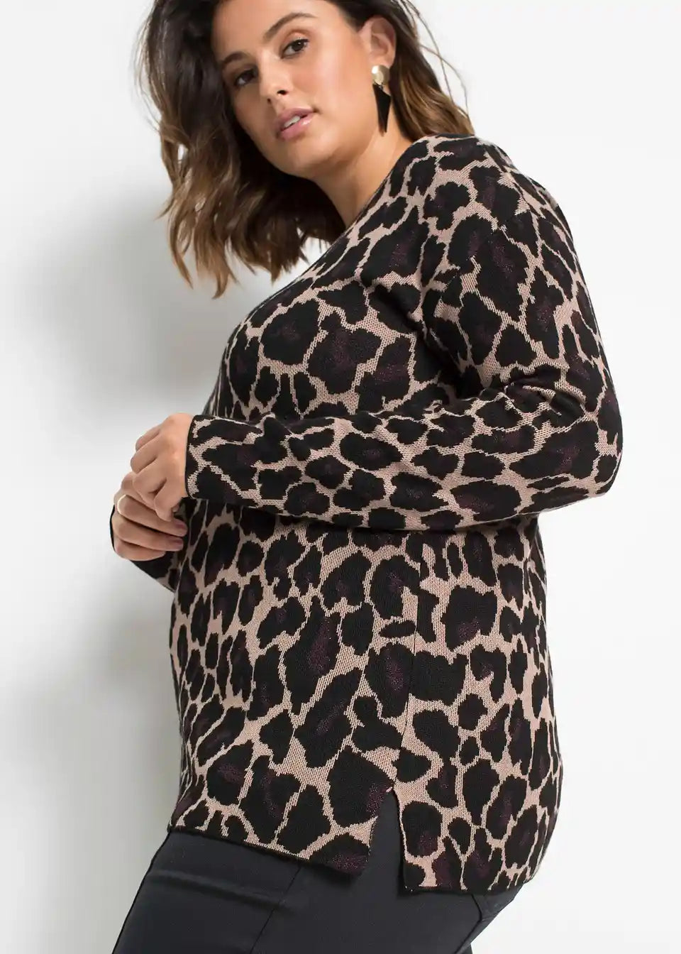 Udobna majica s uzorkom s bočnim prorezima na rubu. Duljina za vel. 36/38 cca 64 cm.