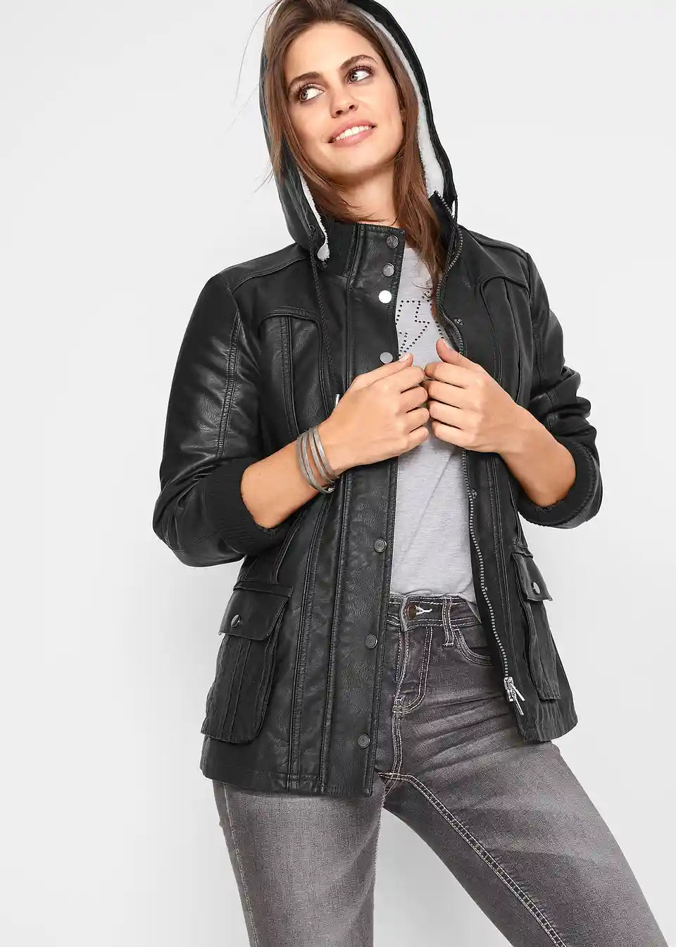 Odlična jakna od imitacije kože s odvojivom kapuljačom