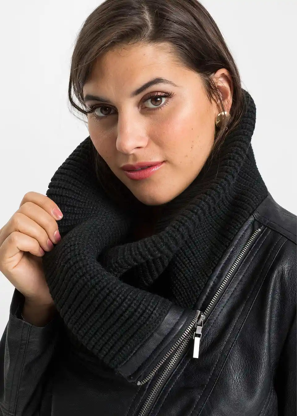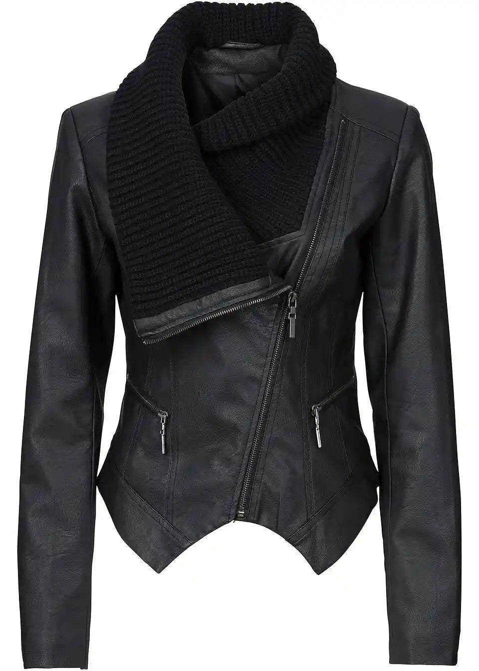 Jakna od imitacije kože sa šal ovratnikom