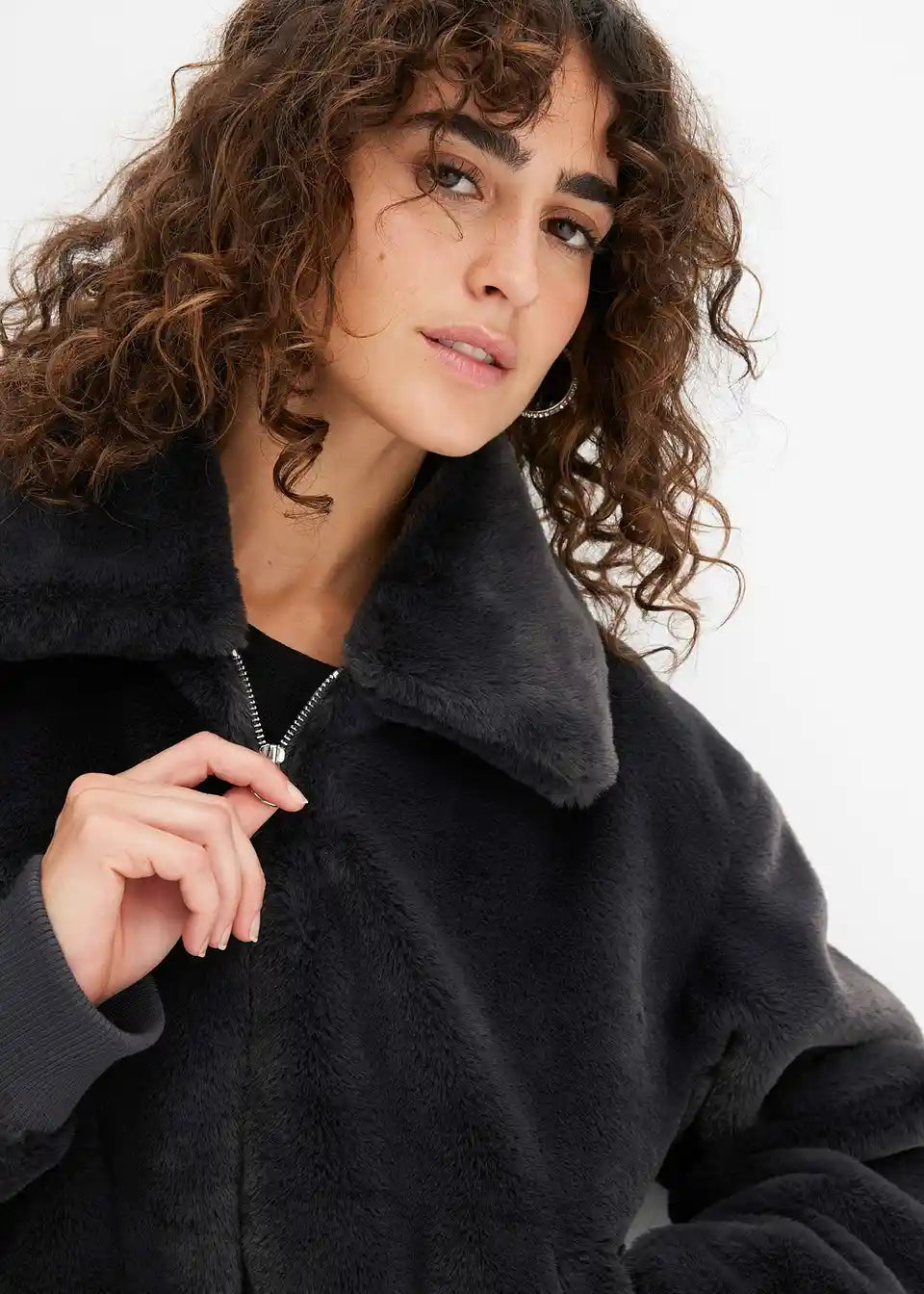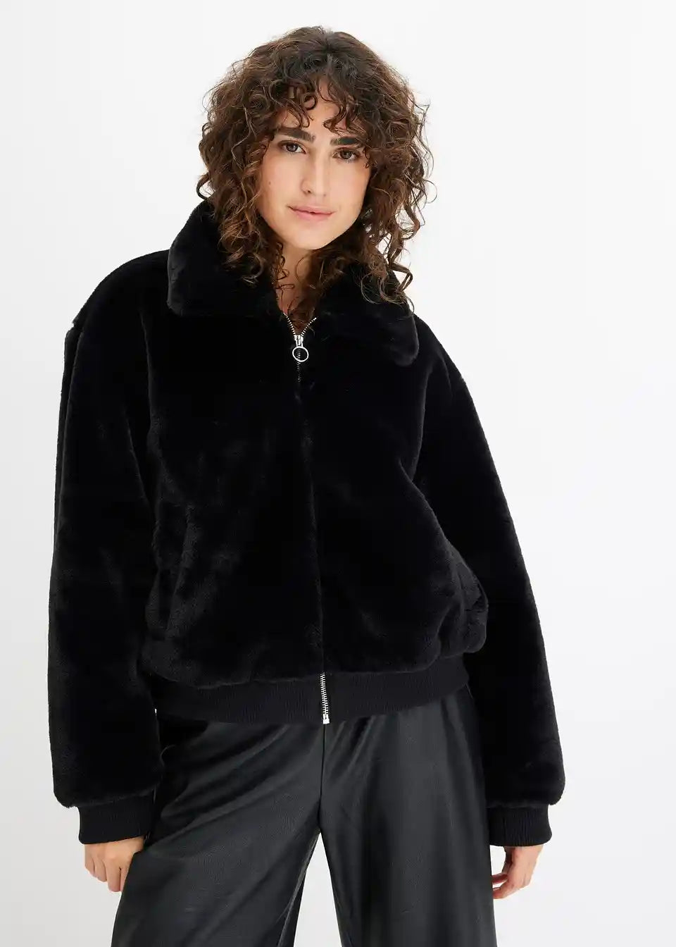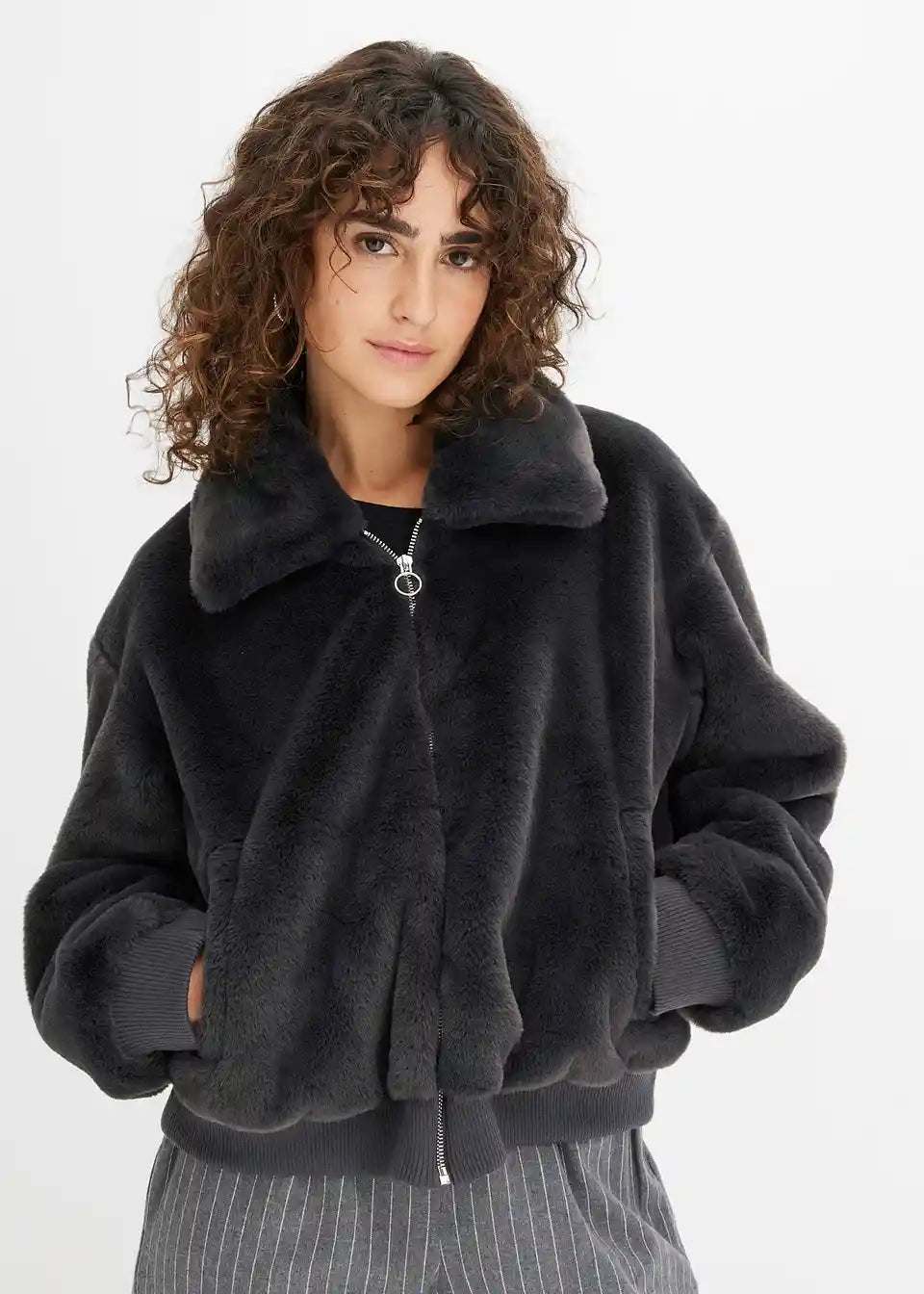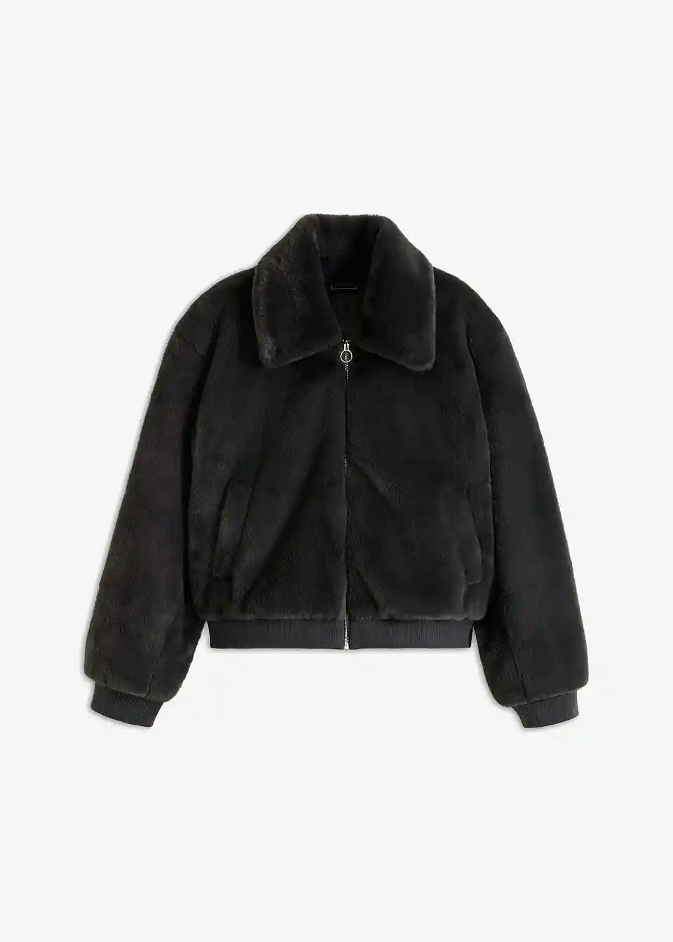 Moderna jakna od imitacije krzna s ovratnikom i džepovima