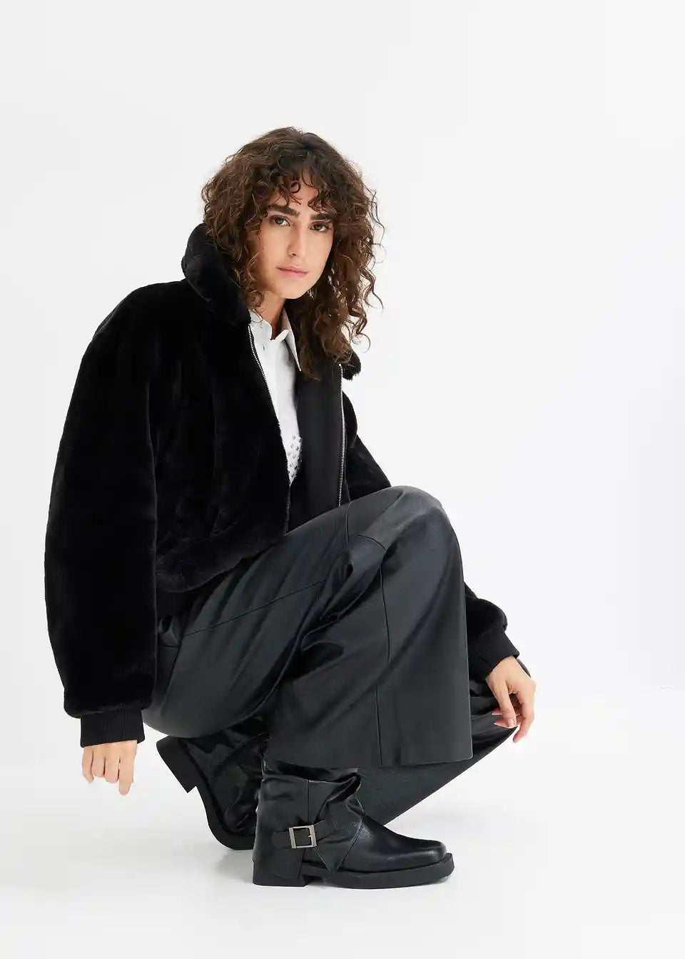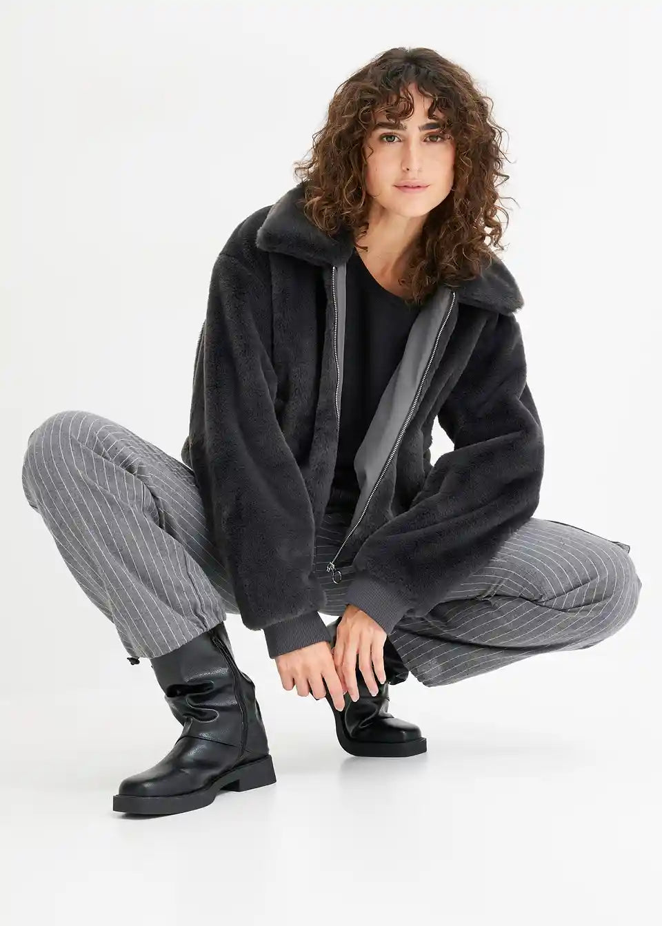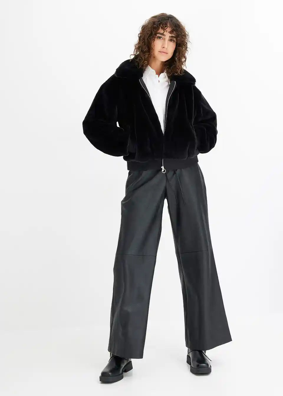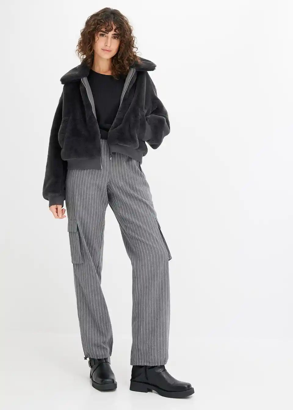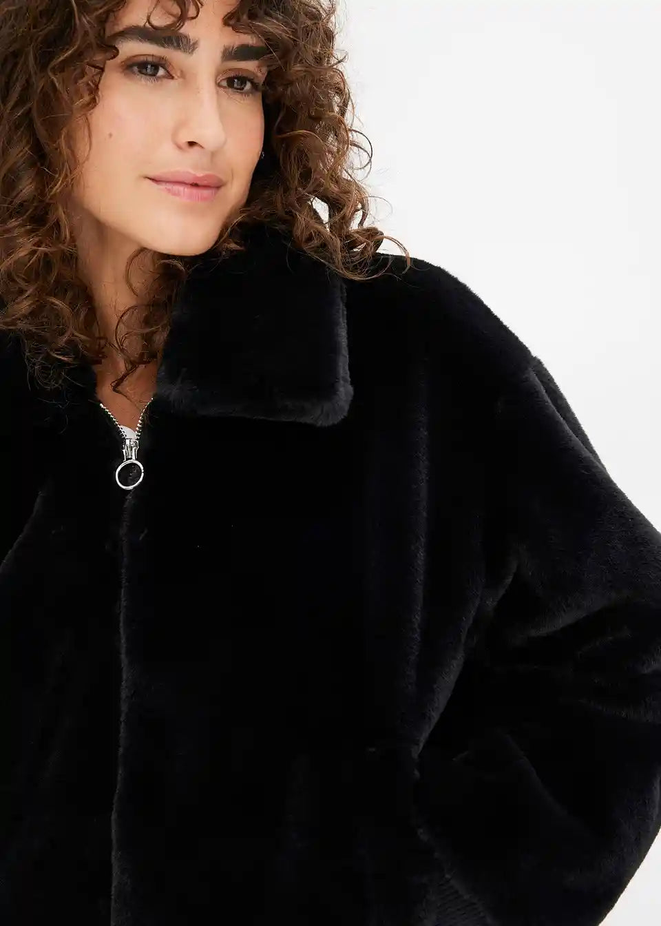 Moderna jakna od imitacije krzna s ovratnikom i džepovima