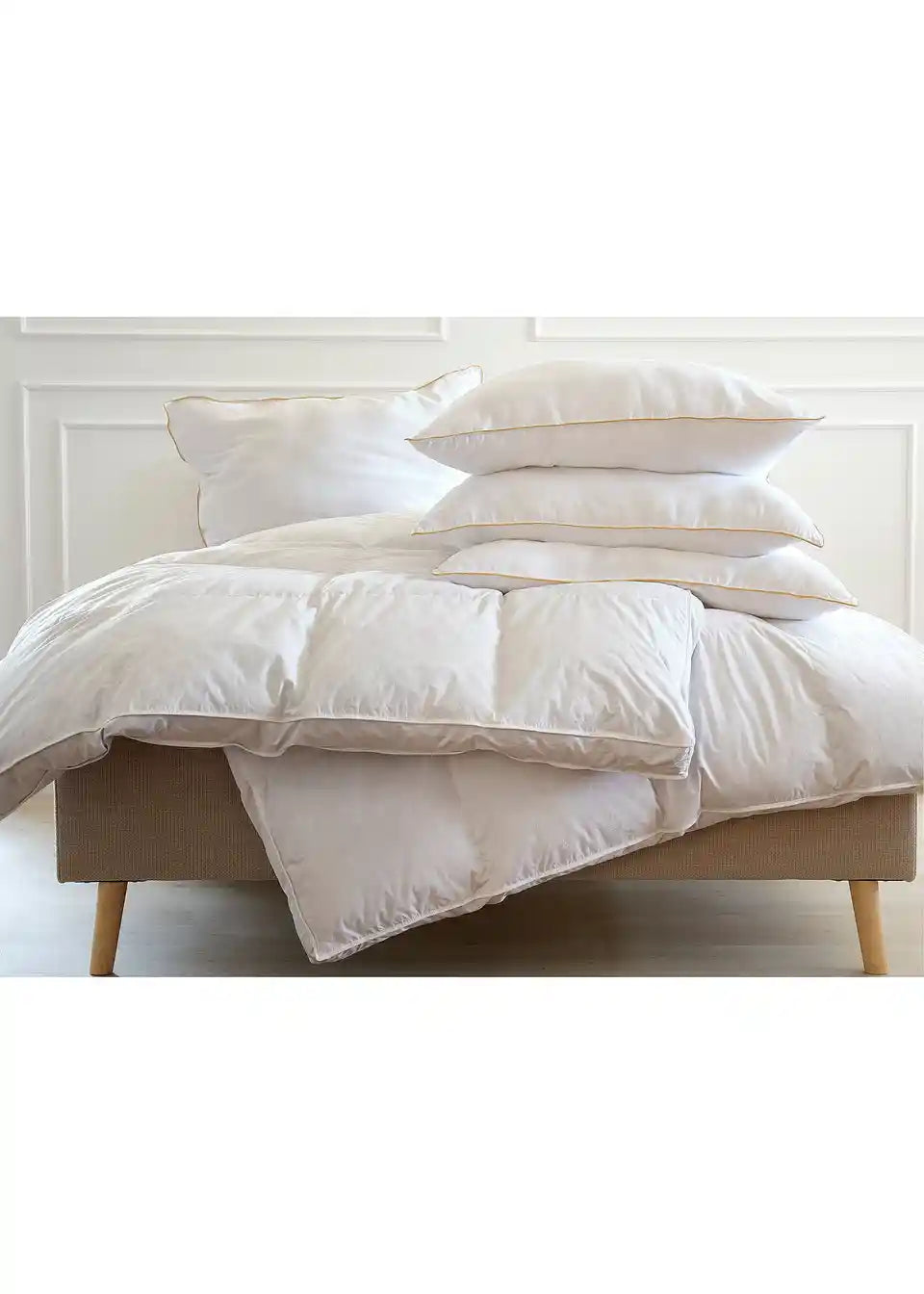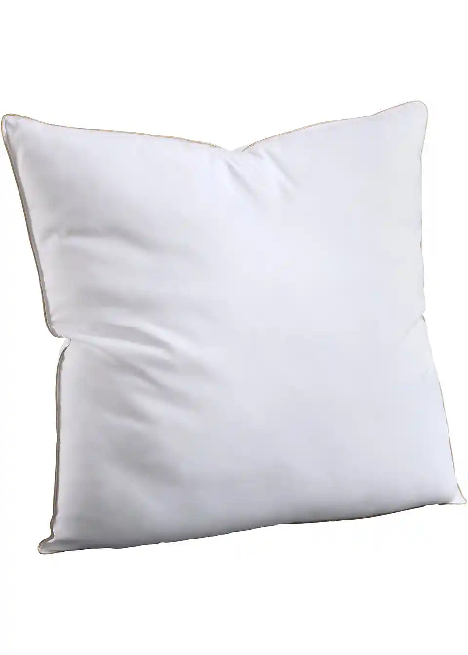 Ovaj jastuk je mekan i udoban. Osjeća se poput pravog perjastog jastuka, ali je opremljen punjenjem od poliestera. Ukrašen je zlatnim rubom.