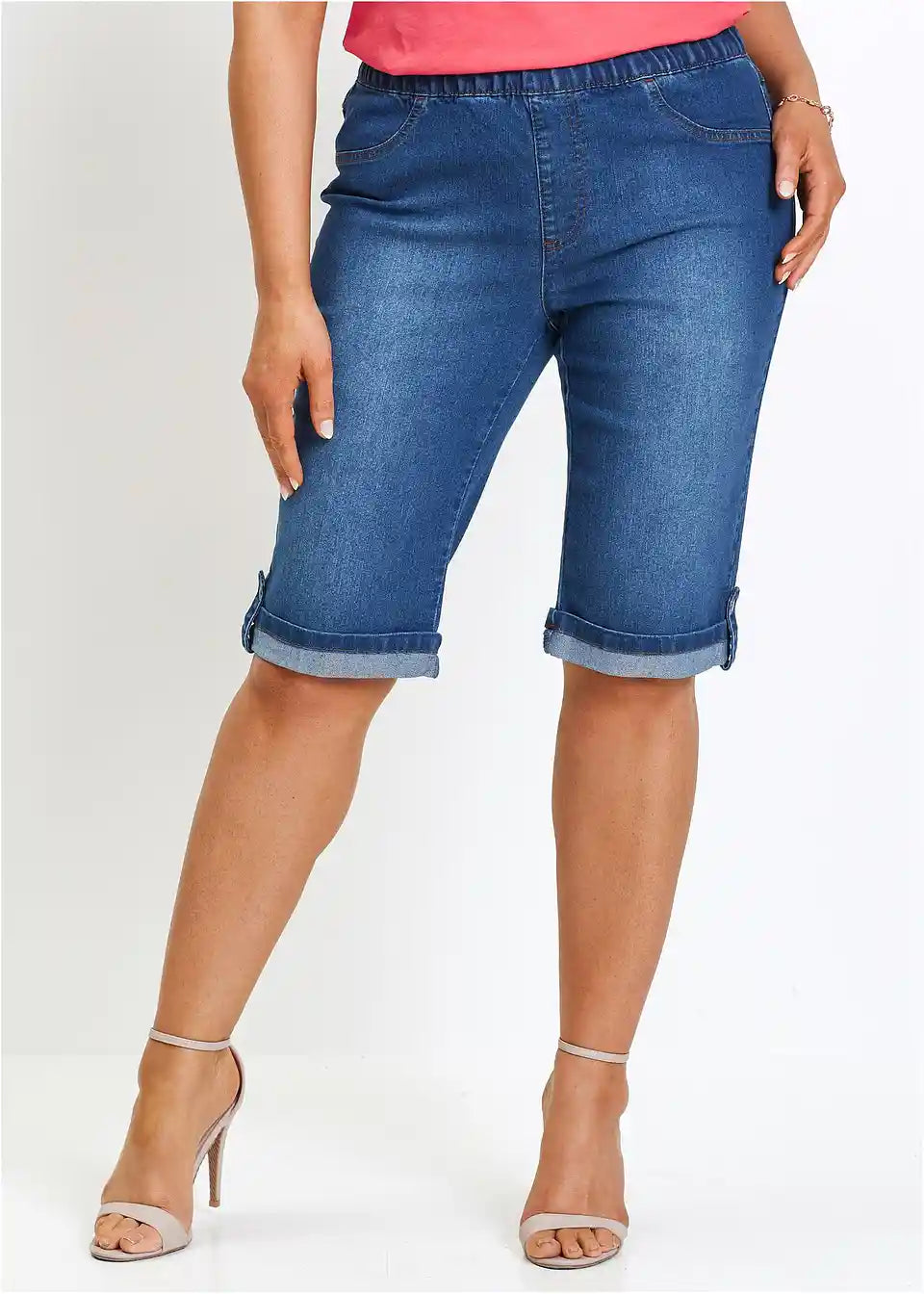 Udobne jeans bermude s dekorativnim patentnim zatvaračem