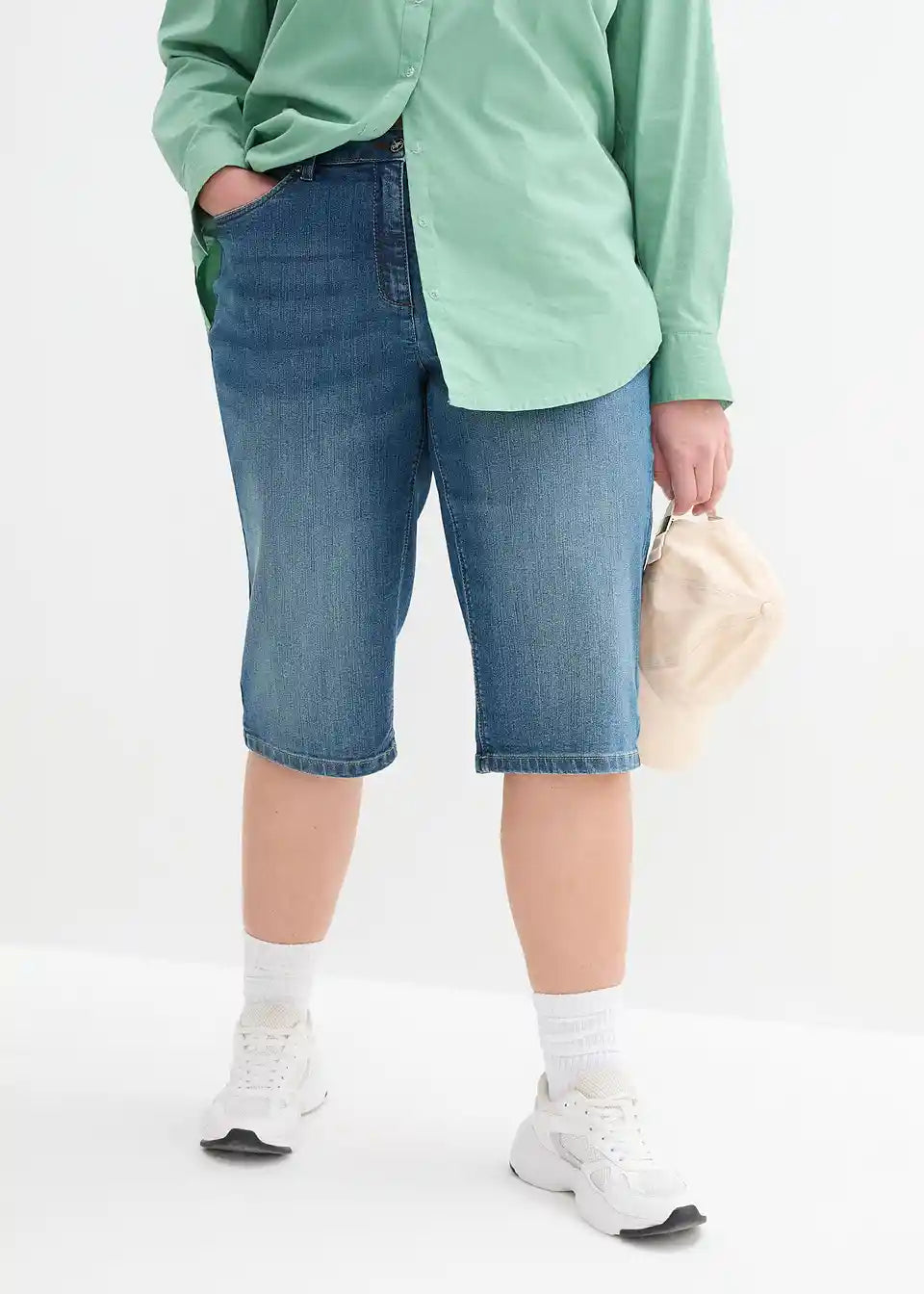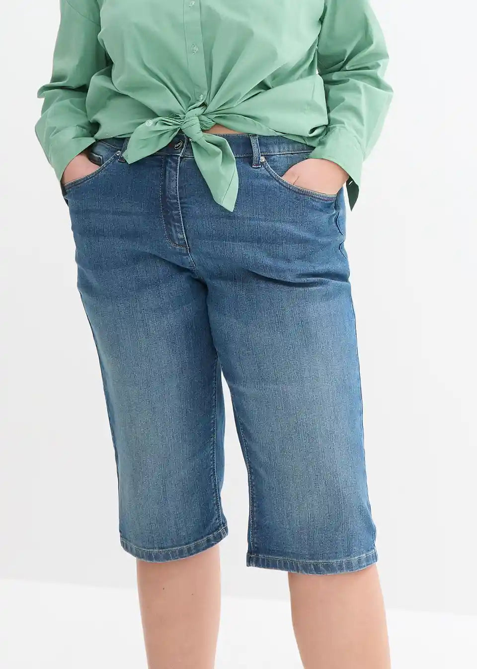 Stretch Jeans Bermuda u podvrnutom izgledu s pojasnim petljama