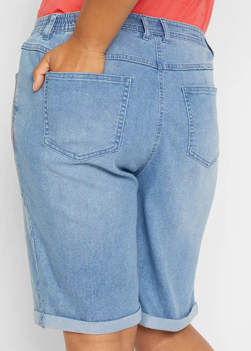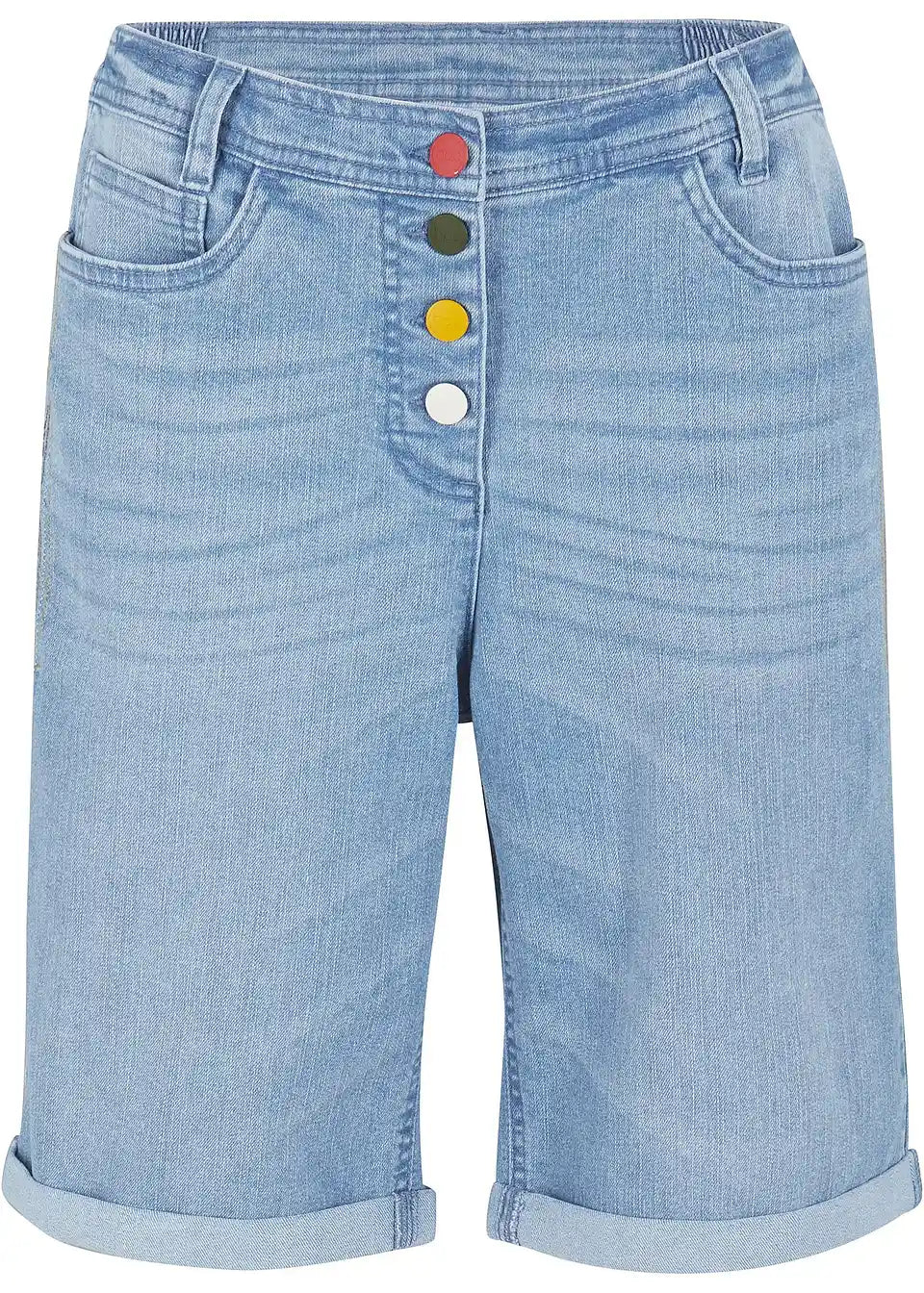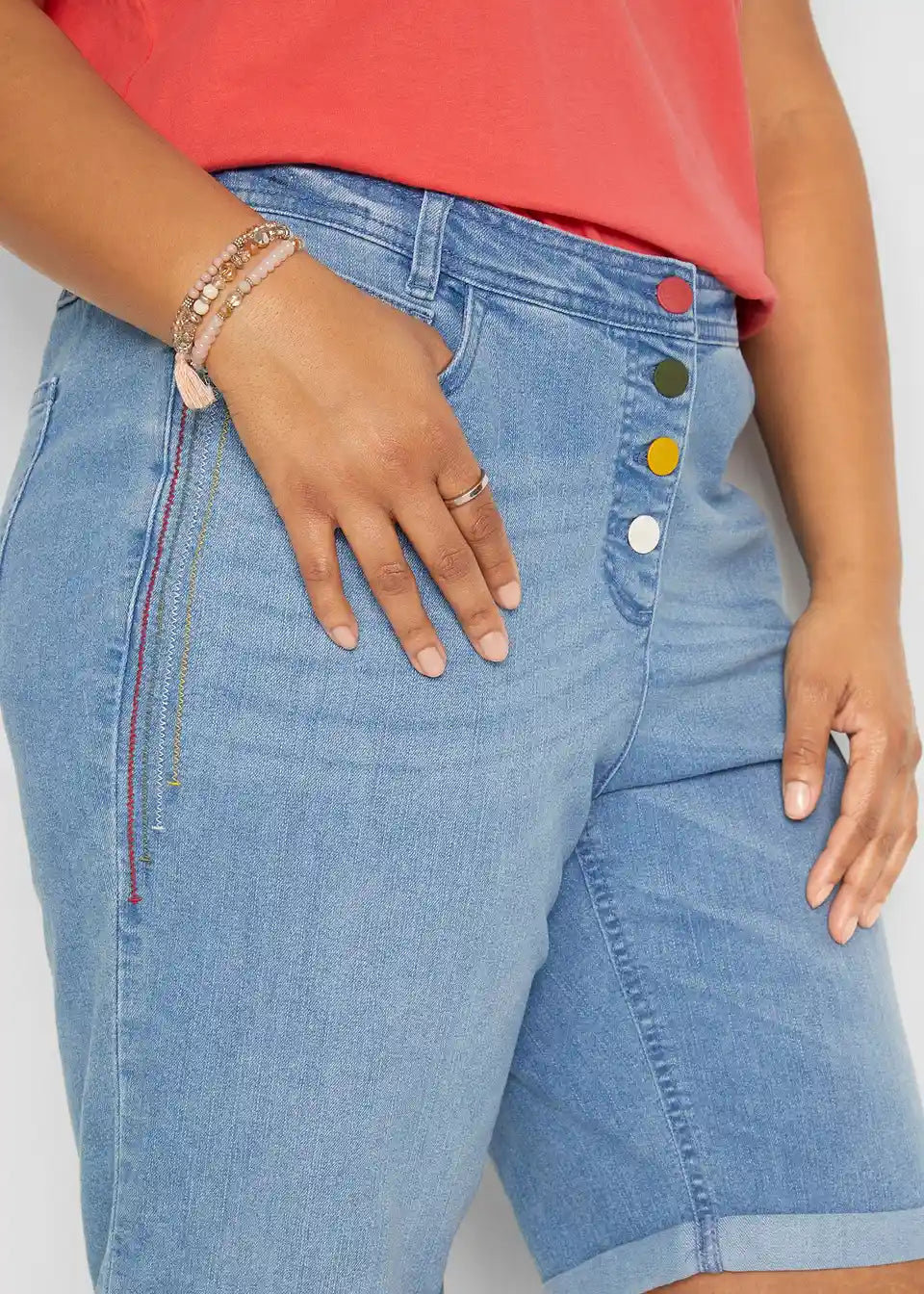 Stretch Jeans-Bermuda s vezom i upadljivim redom gumba na pojasu
