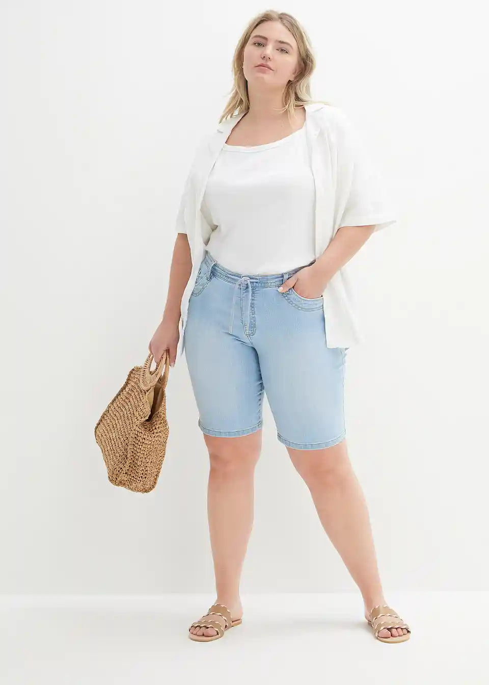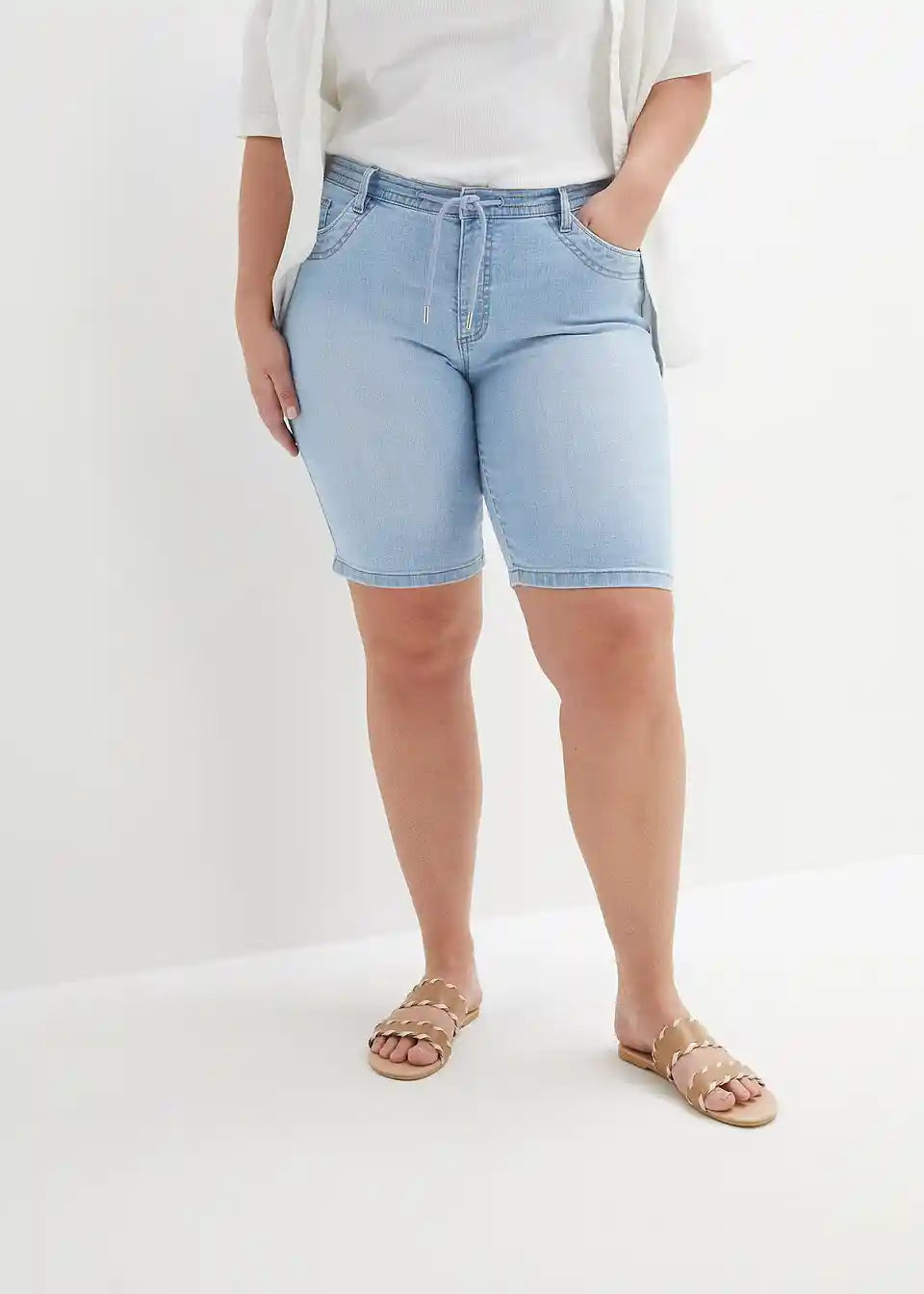 Bermude od trapera uskog kroja sa srednje visokim strukom