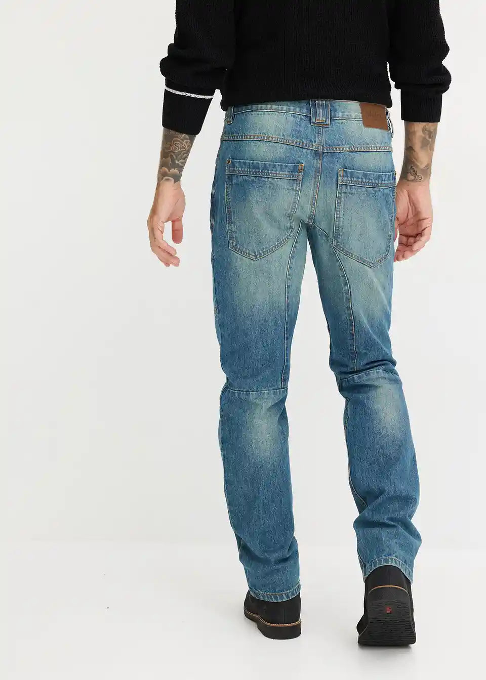 Zahvaljujući pažljivo izrađenim, koso postavljenim šavovima na nogavicama, ove Regular Fit traperice za muškarce dobivaju svoj jedinstveni izgled. Kroj se odlikuje normalnom širinom bokova i nogavica, srednje visokim strukom i ravnom nogavicom s normalnom širinom na krajevima. Used izgled 5-džepnih traperica brenda John Baner savršeno se slaže sa svojim krojem.