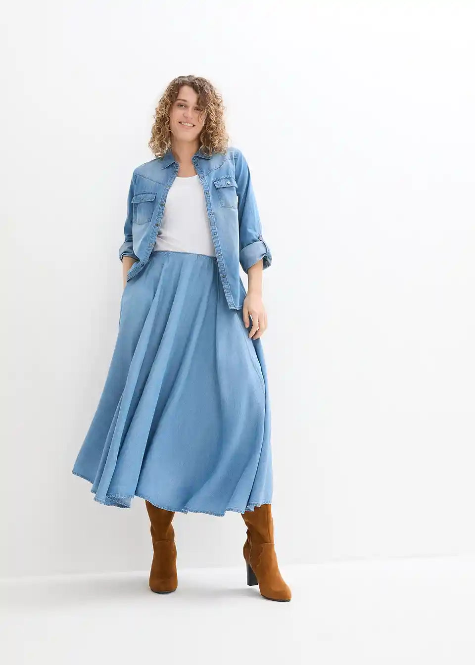 Lyocell suknja s udobnim pojasom i džepovima, midi duljine