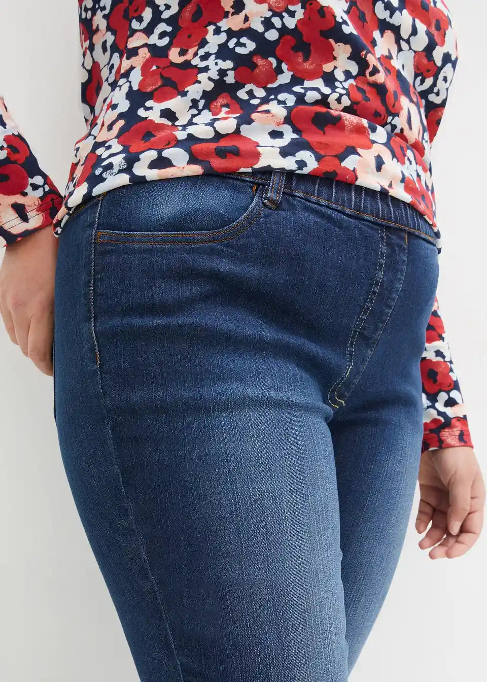Uske treggings hlače s elastičnim pojasom od mega rastezljivog materijala s ispranim efektom