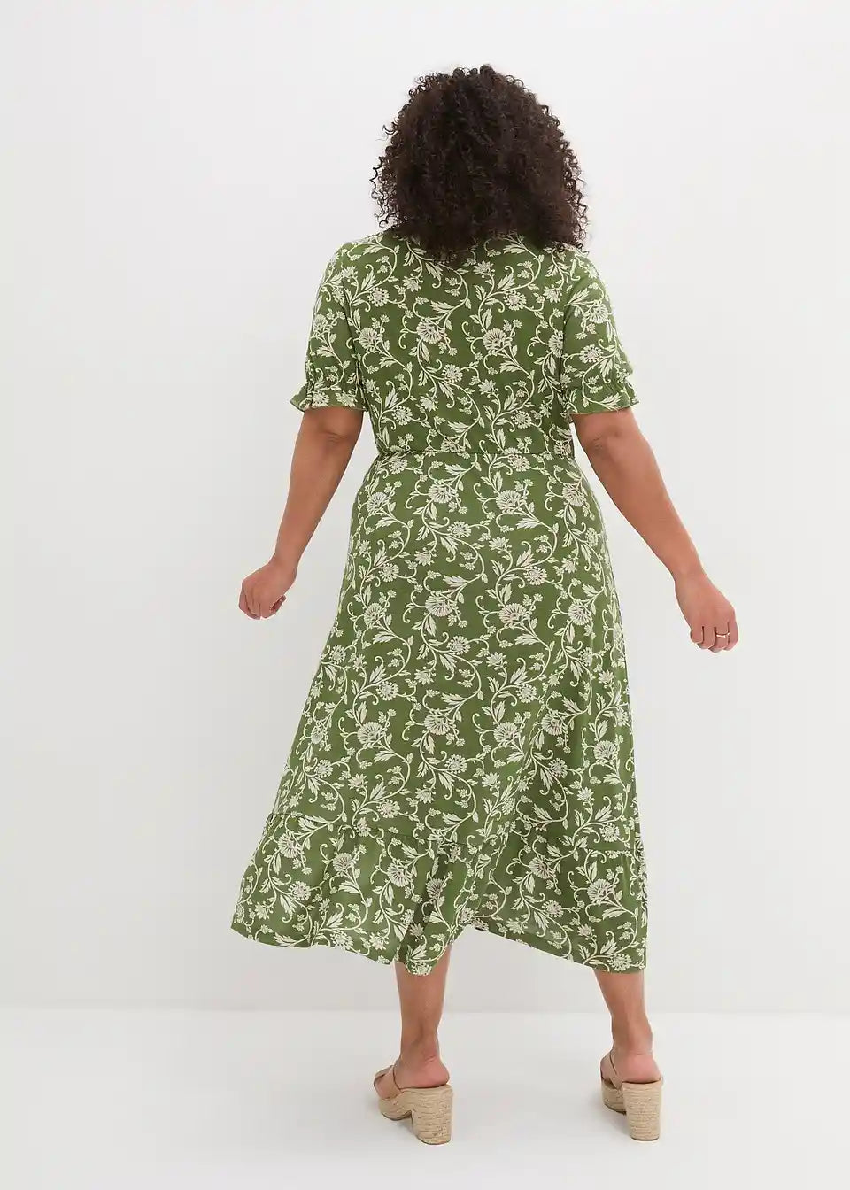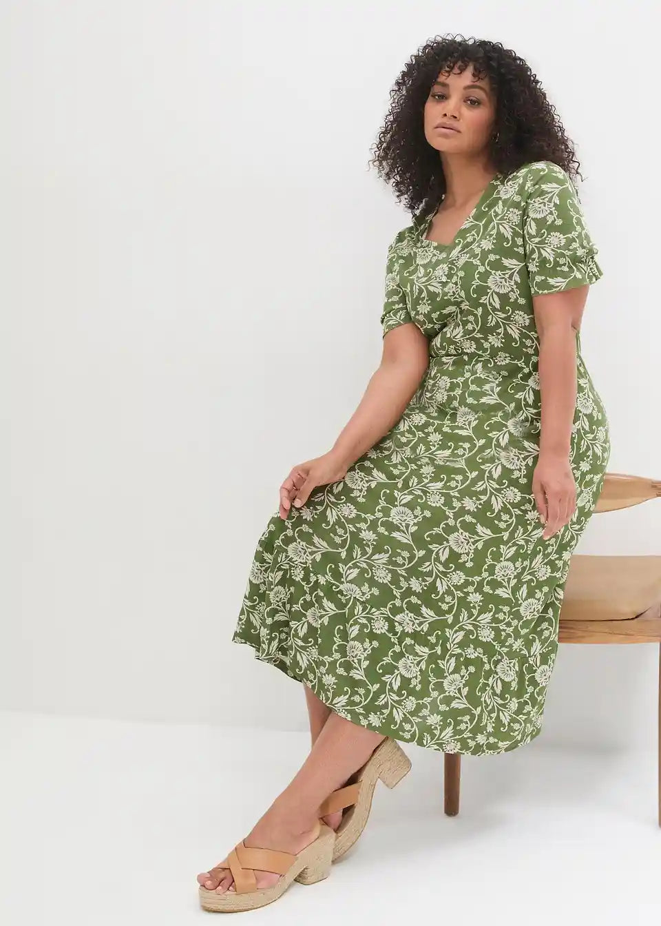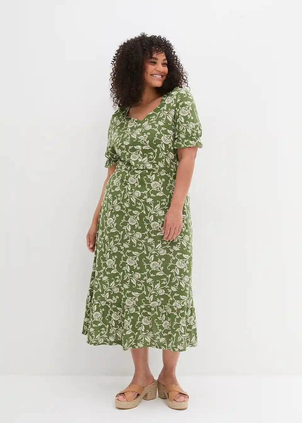 Haljina s cvjetnim uzorkom od jerseya s napuhanim rukavima i volanima
