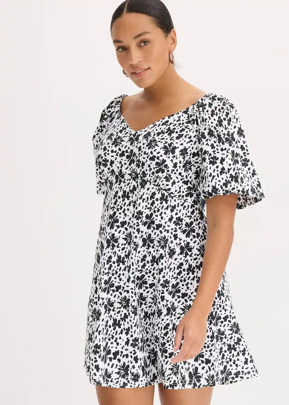 Haljina od jerseya sa srcolikim izrezom i napuhanim rukavima