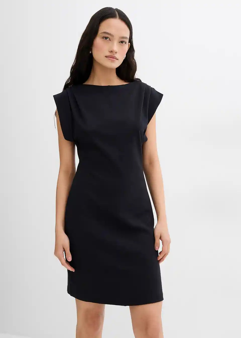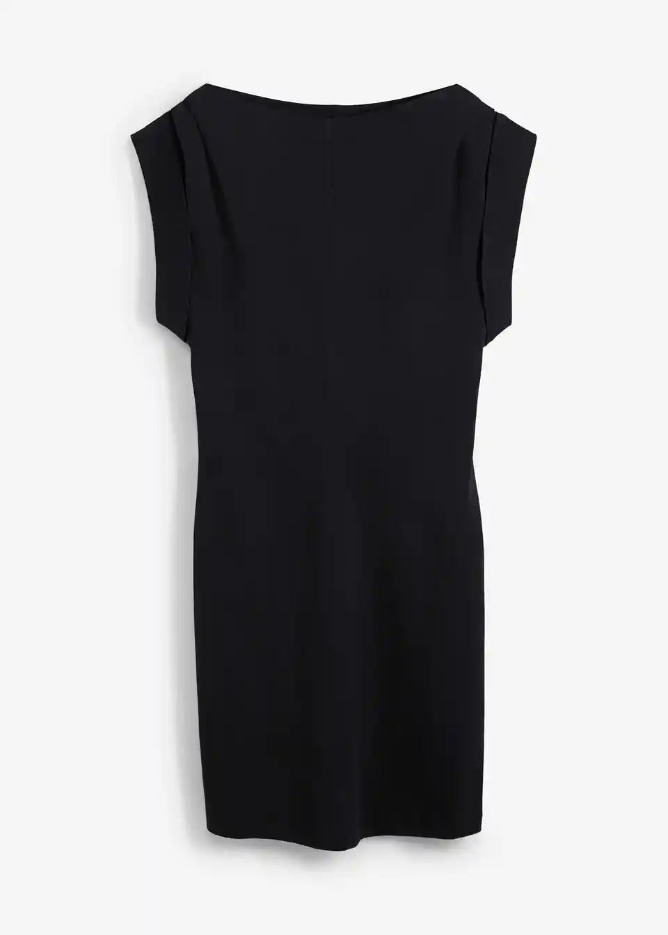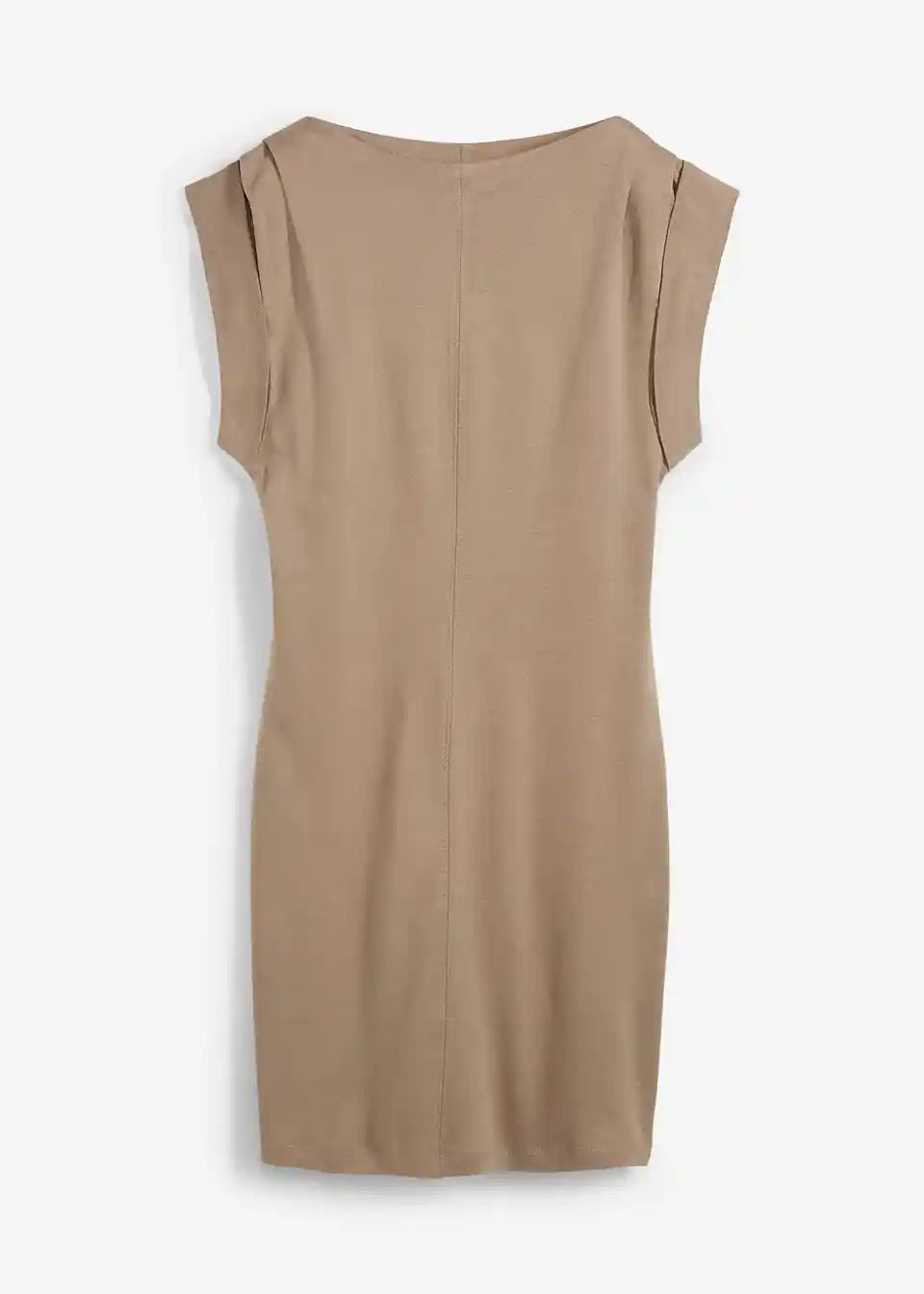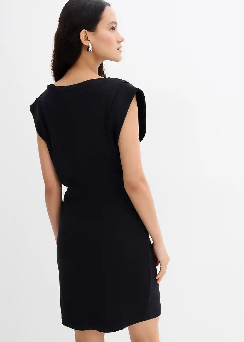 Kratka haljina bez rukava s okruglim izrezom i širokim ramenima te šavovima za oblikovanje sprijeda i straga