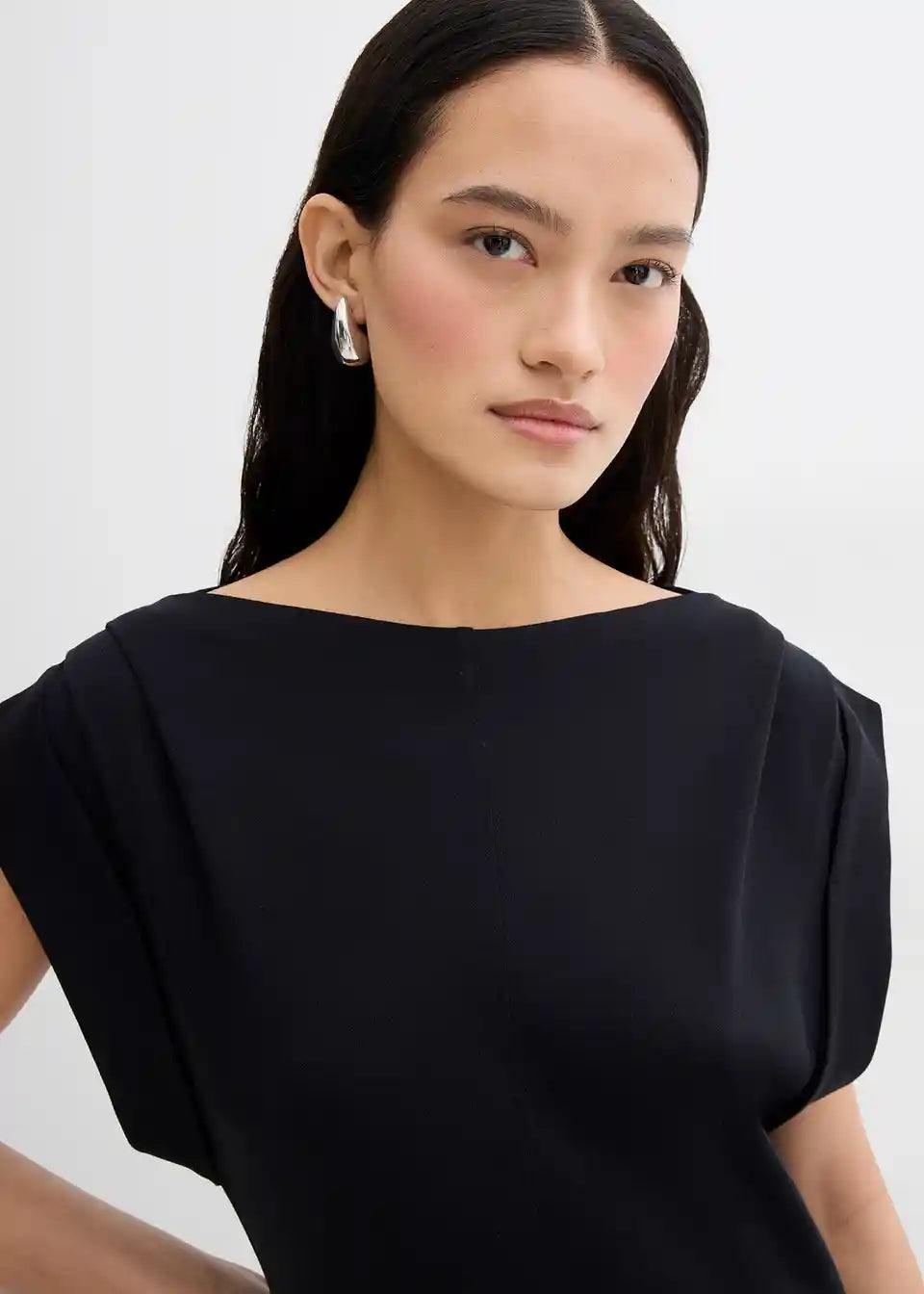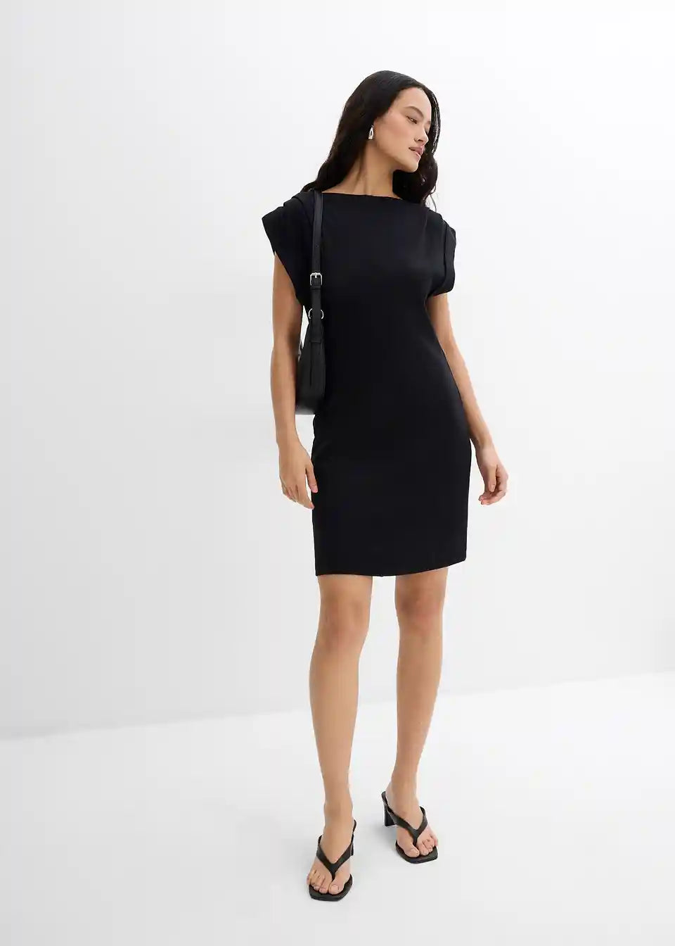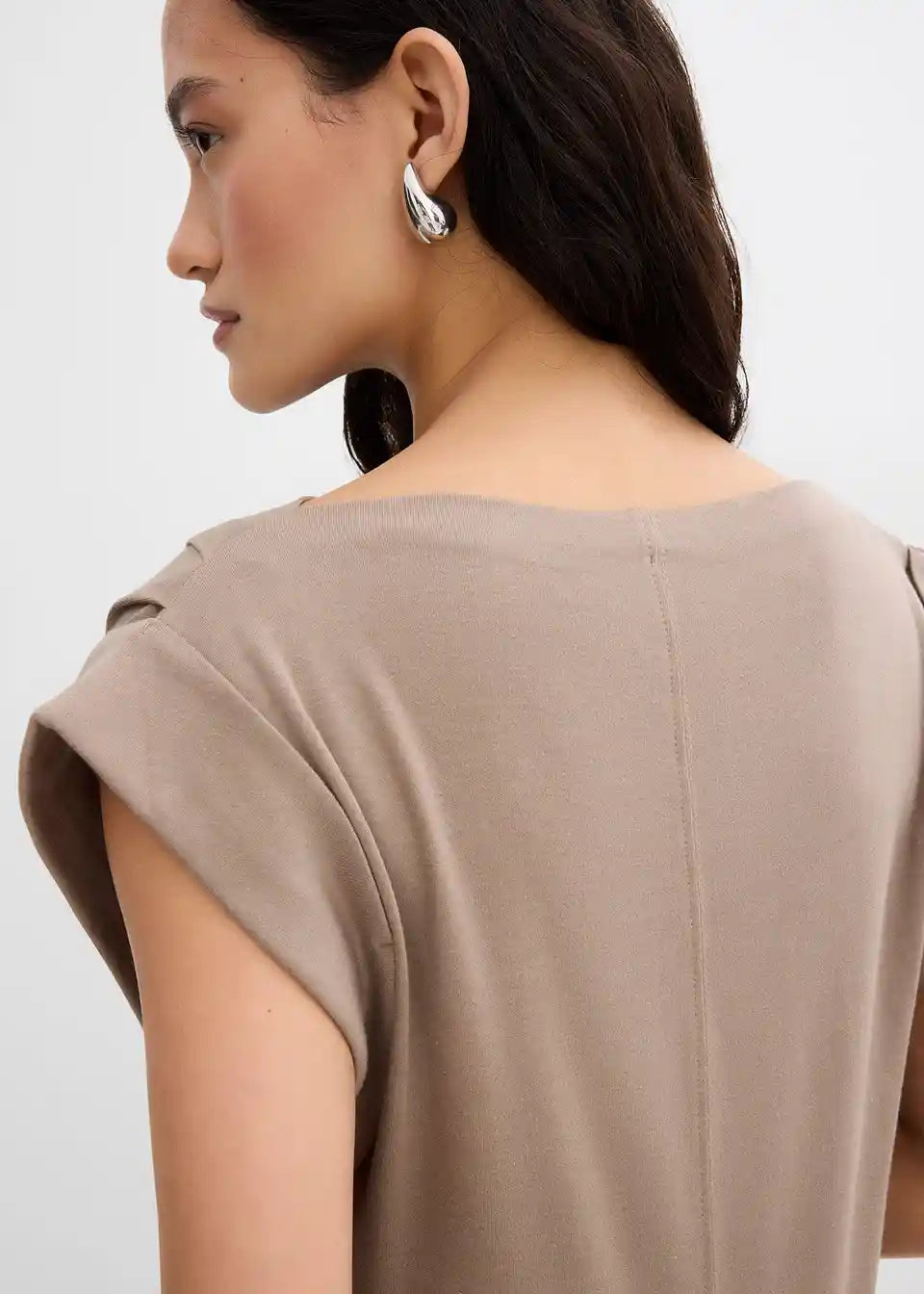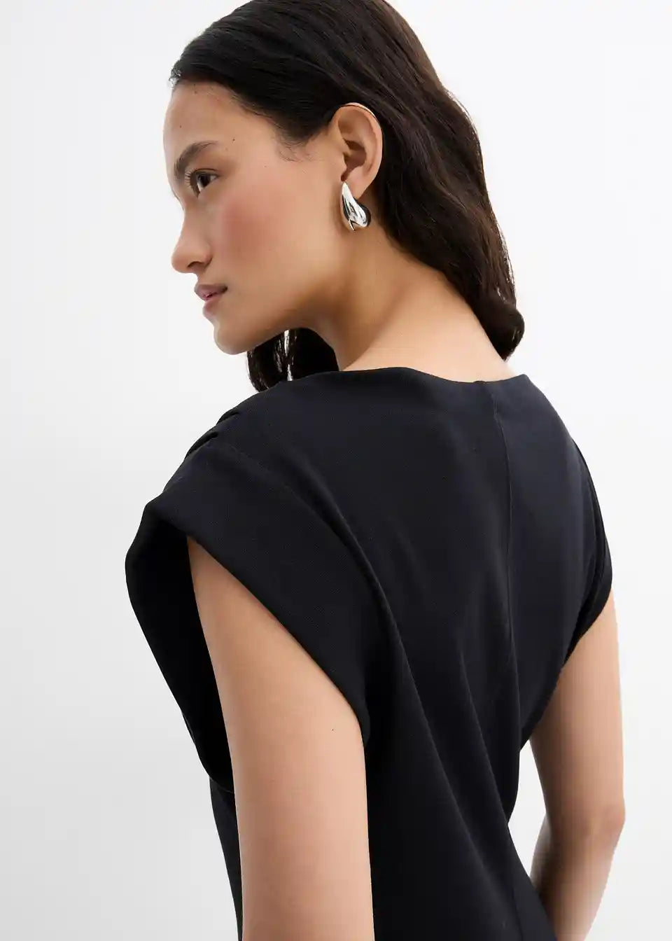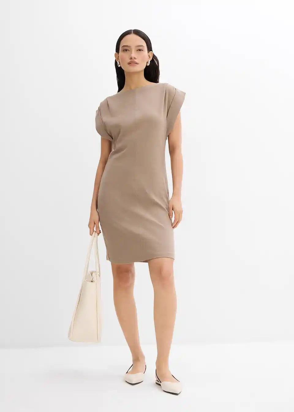 Kratka haljina bez rukava s okruglim izrezom i širokim ramenima te šavovima za oblikovanje sprijeda i straga
