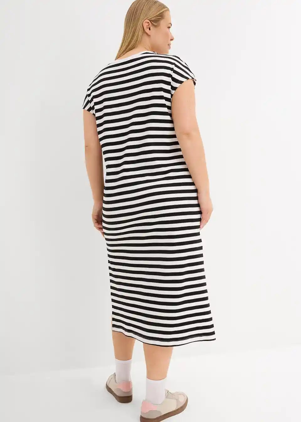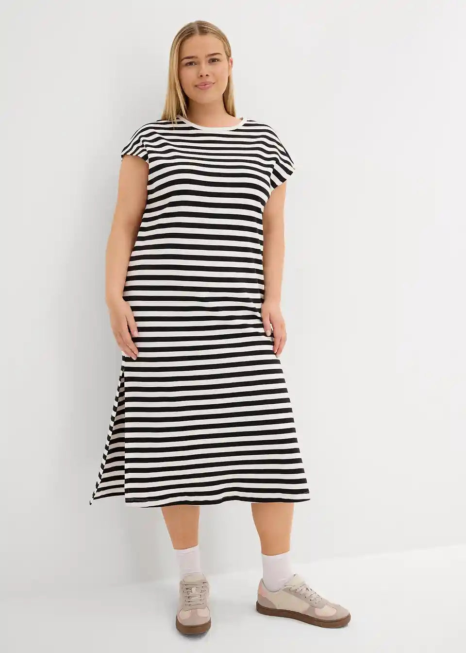 Jersey haljina s okruglim izrezom, širim krojem i ravnim porubom