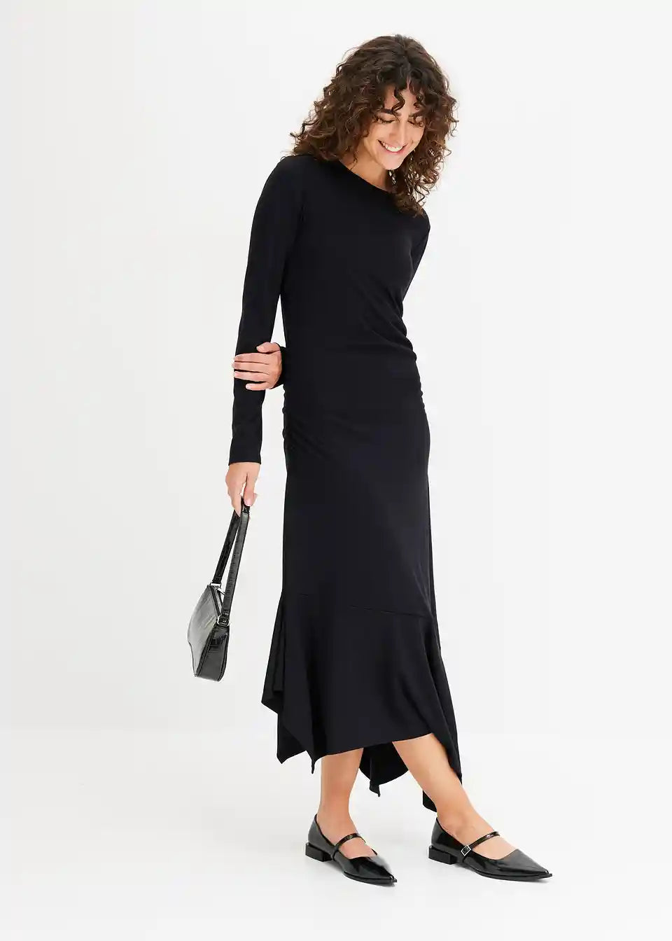 Jersey haljina s asimetričnim rubom i dugim rukavima