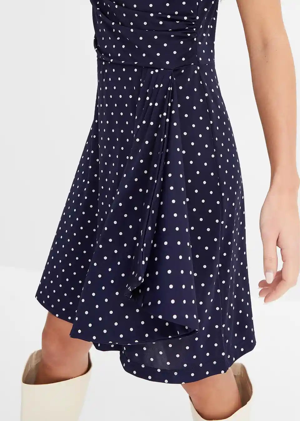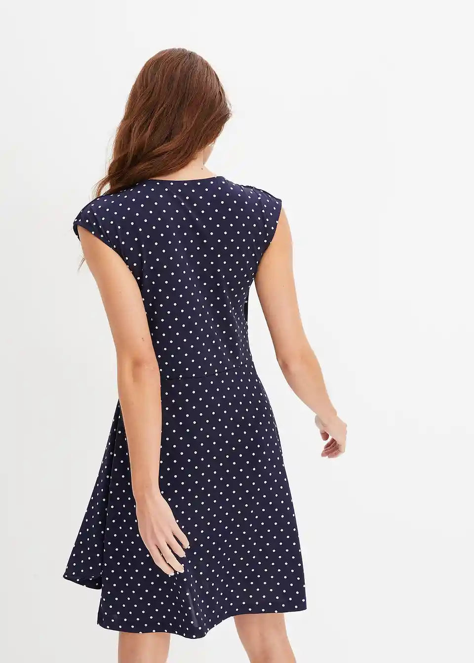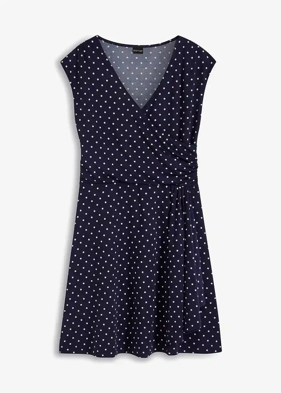 Za šetnju gradom ženstvena haljina s točkicama od BODYFLIRT-a čini odličan izbor. Bočni nabori donose lakoću haljini bez rukava i oblikuju tekuću siluetu. Uzorak s točkicama daje razigran izgled. Optika omota i duboki V-izrez ističu dekolte. Sandale na platformu s pletivom idealan su izbor za ovu ljetnu haljinu i zaokružuju ženstveni izgled.