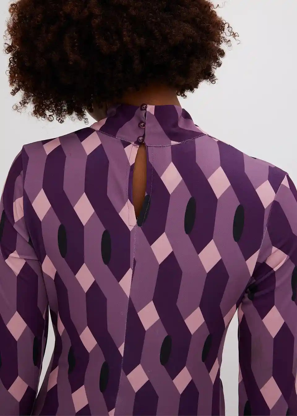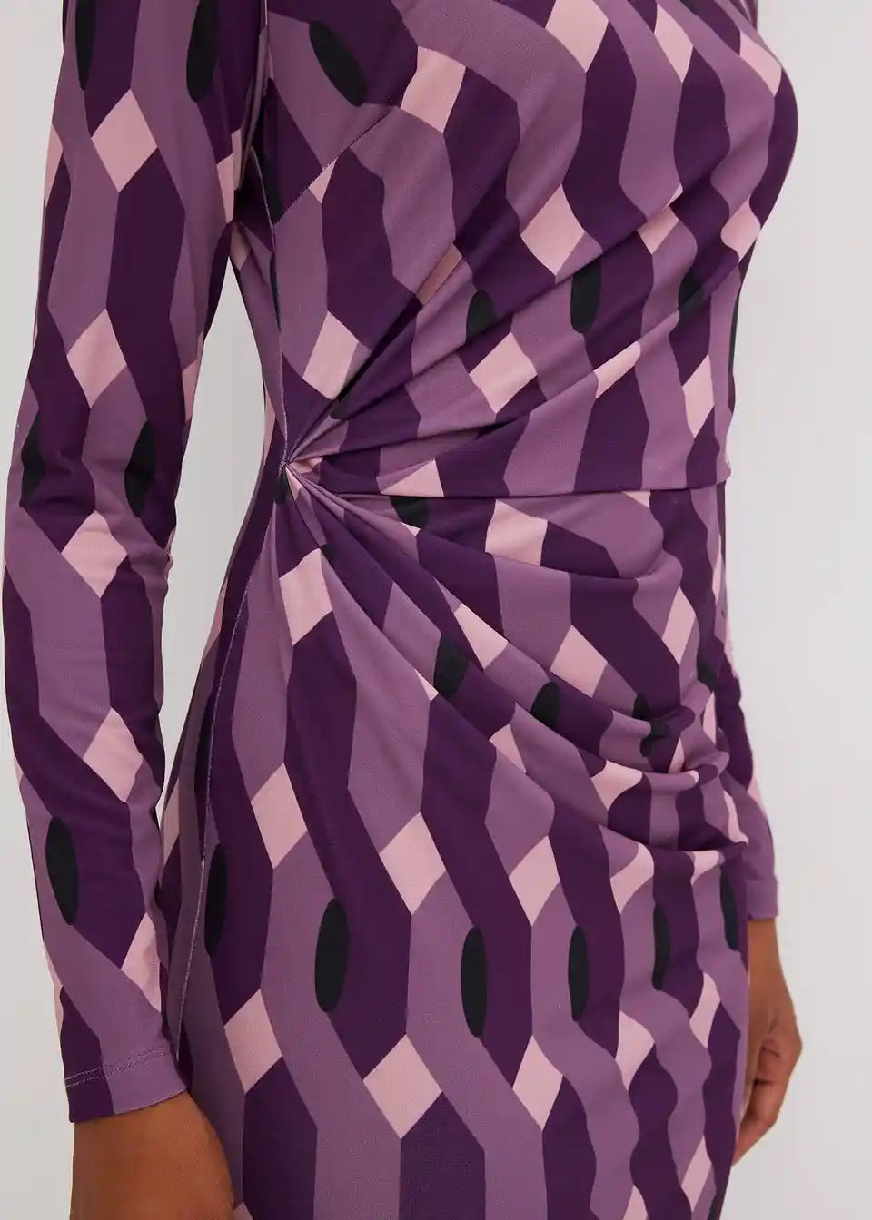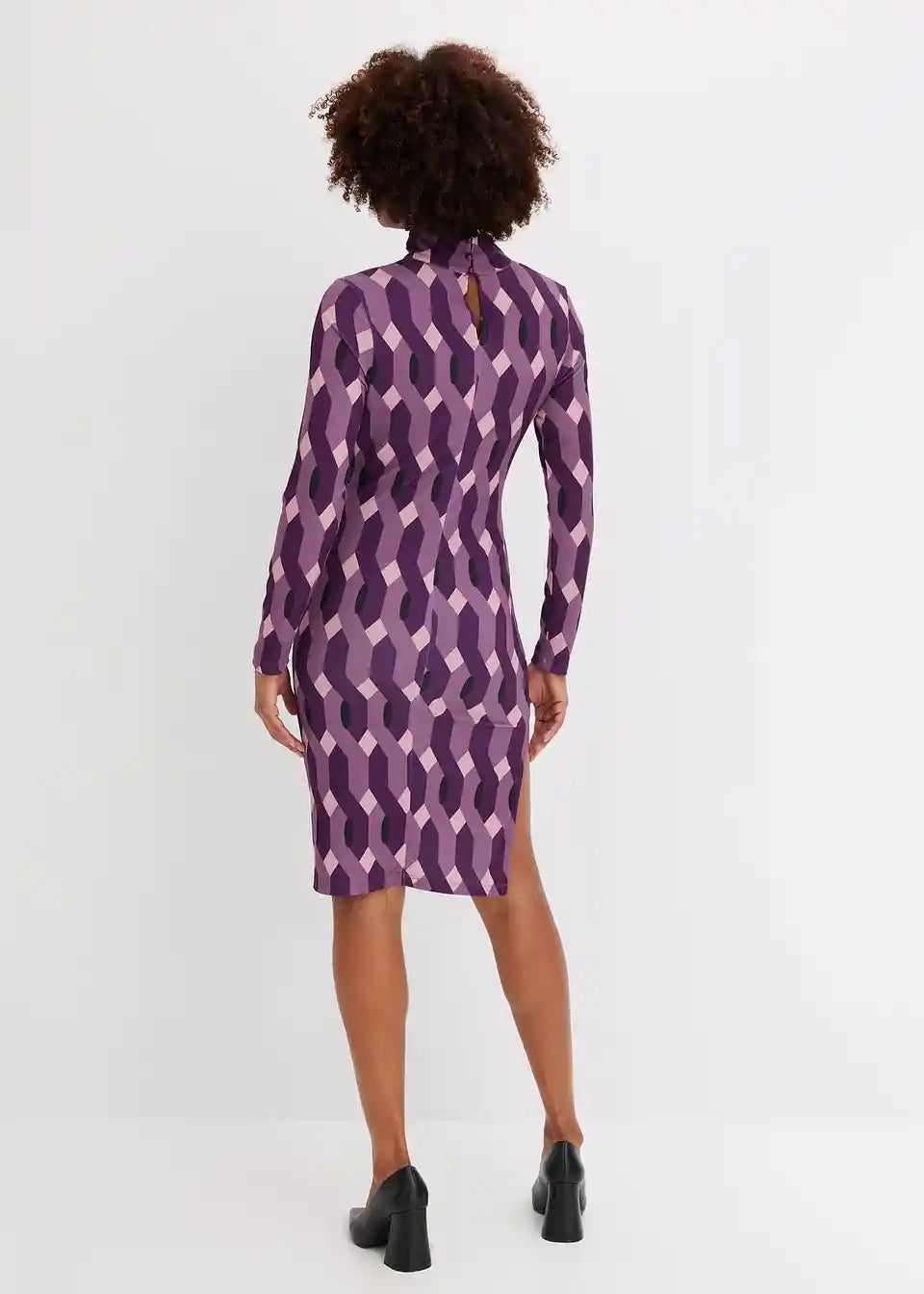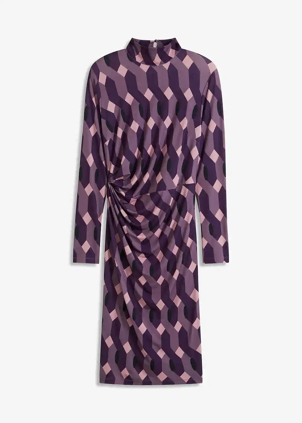 Moderno i profinjeno: Jersey haljina s visokim ovratnikom i nabiranjem na bočnom šavu.