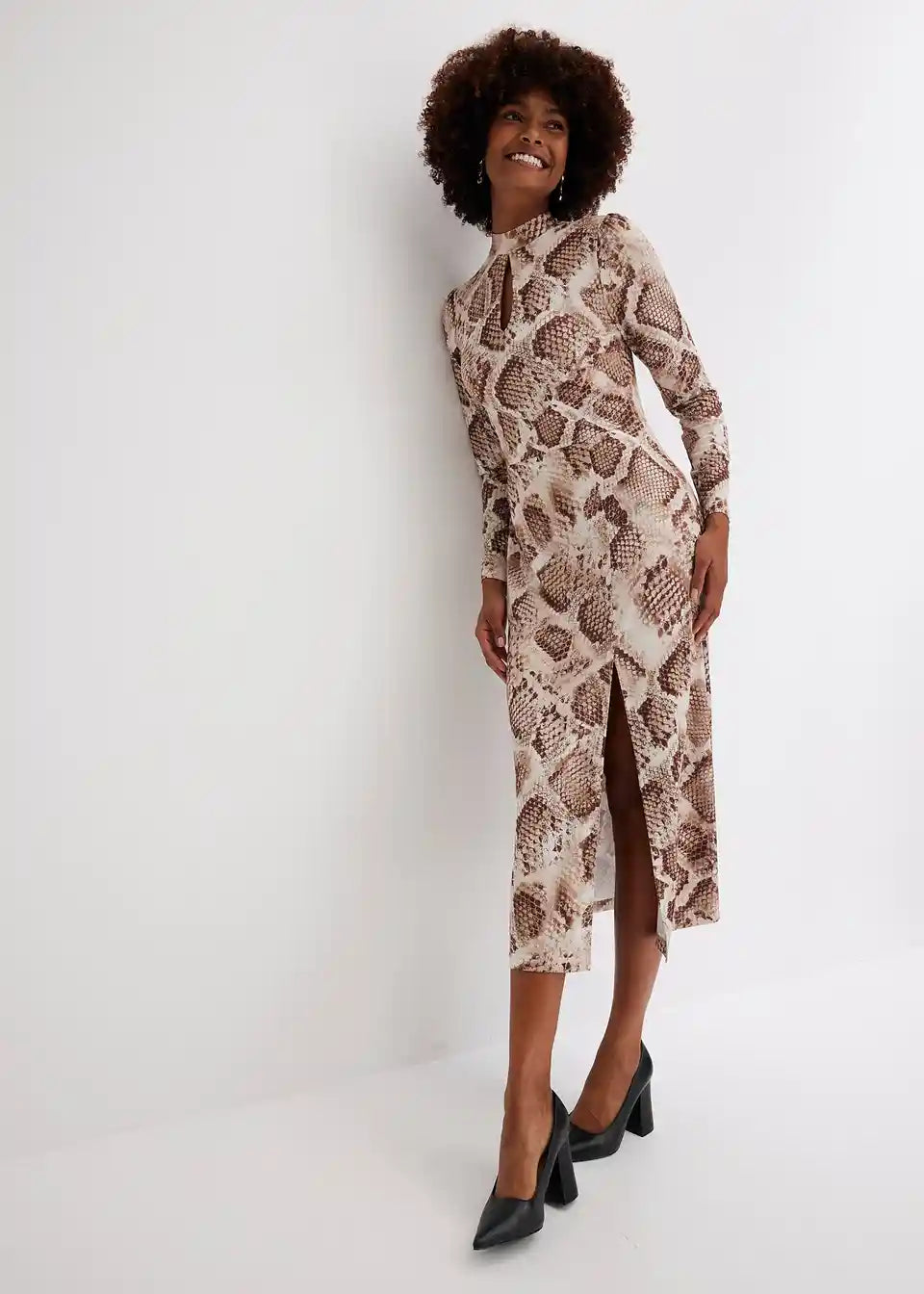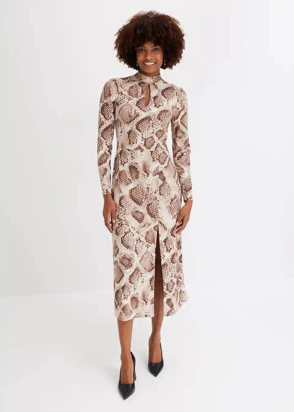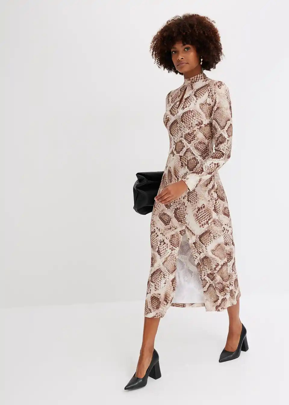 Moderna i ženstvena: Jersey haljina s visokim ovratnikom i Keyhole-izrezom te dugačkim prorezom na suknji