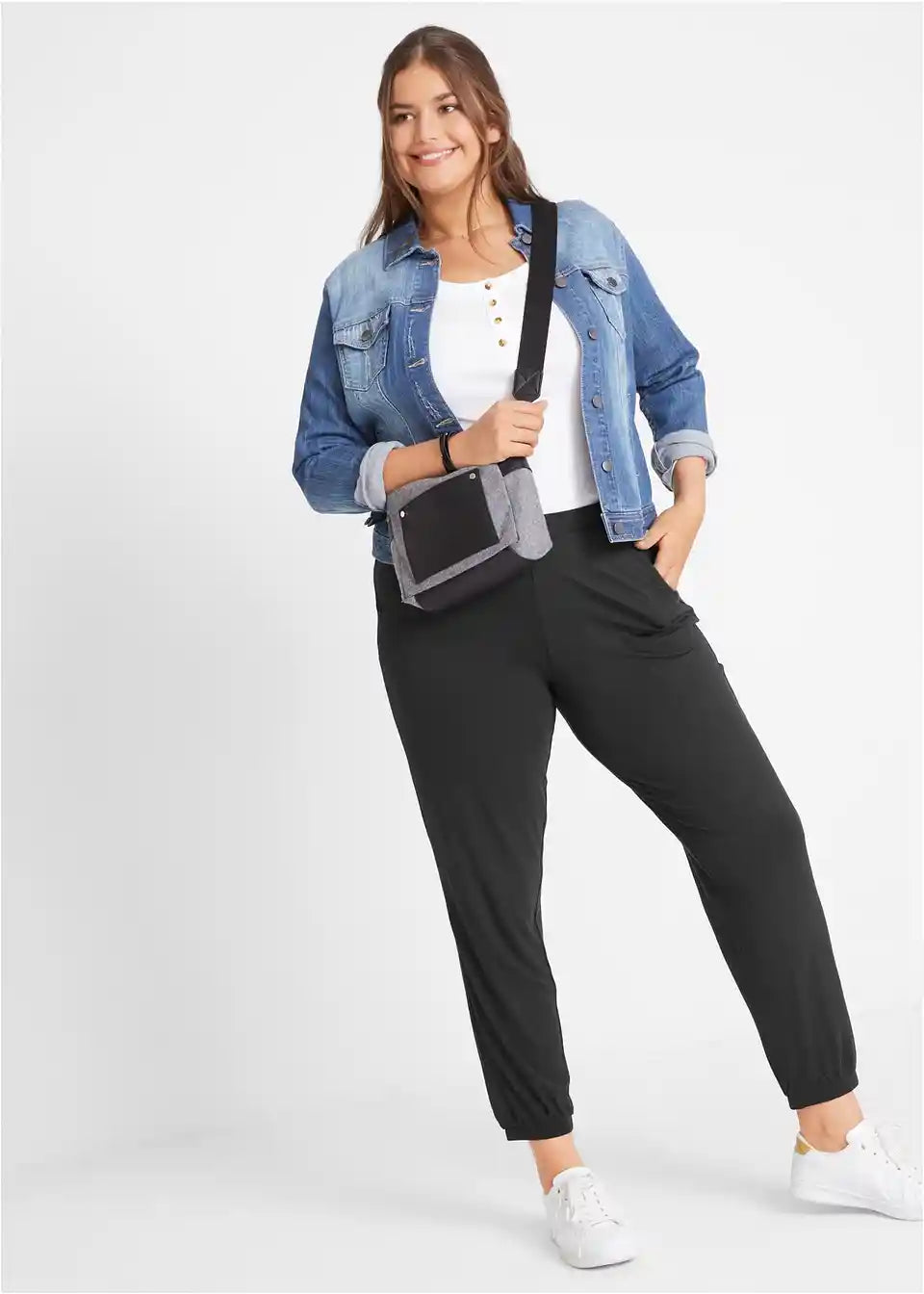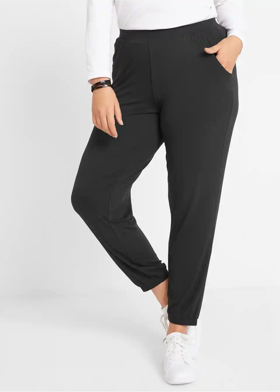 Hlače s džepovima u šavu od padajućeg jerseya s viskozom