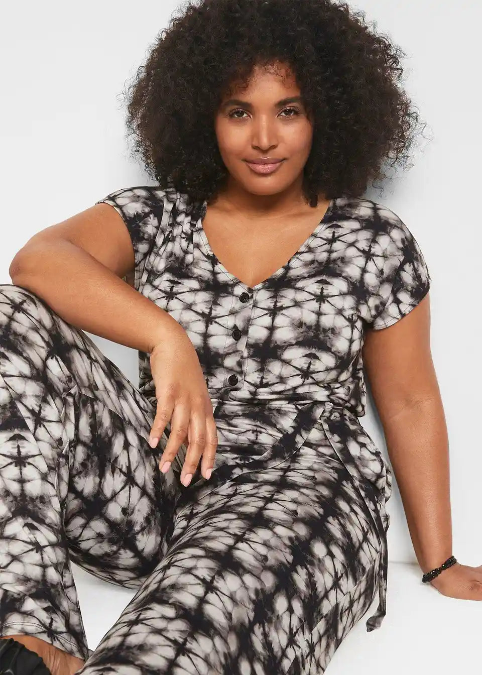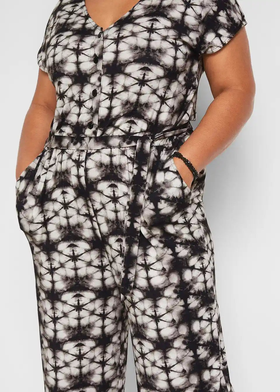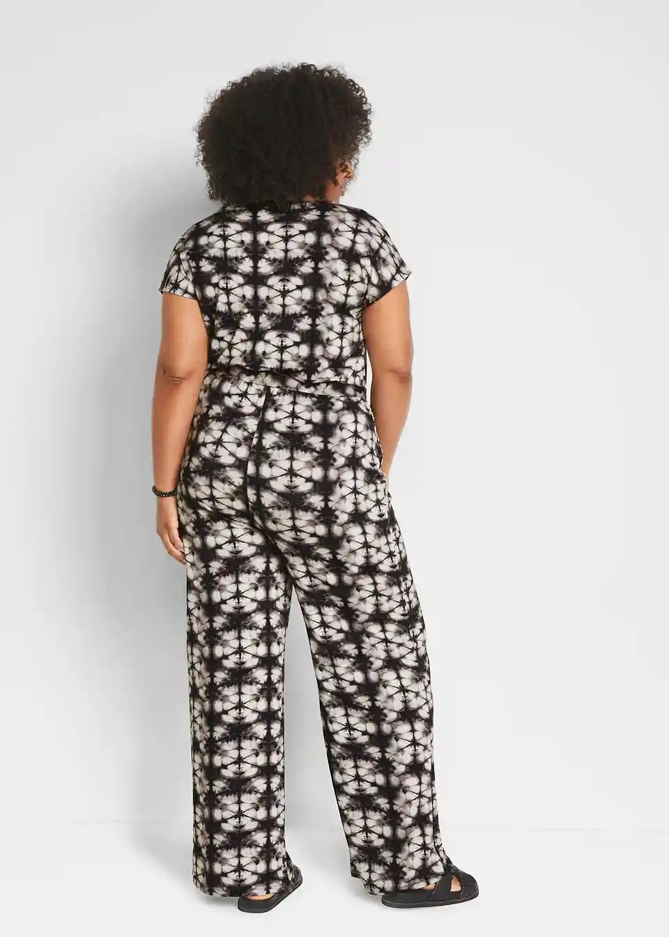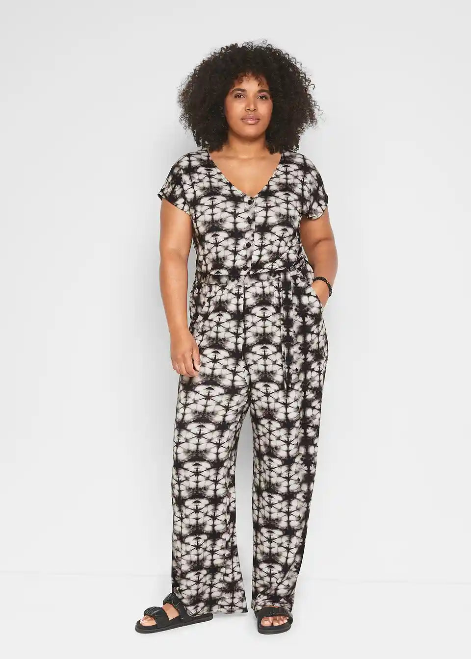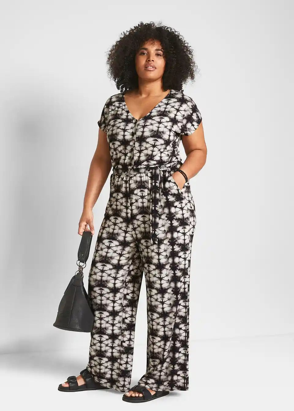 Moderan jumpsuit od udobnog jersey materijala s V-izrezom i gumicom u struku
