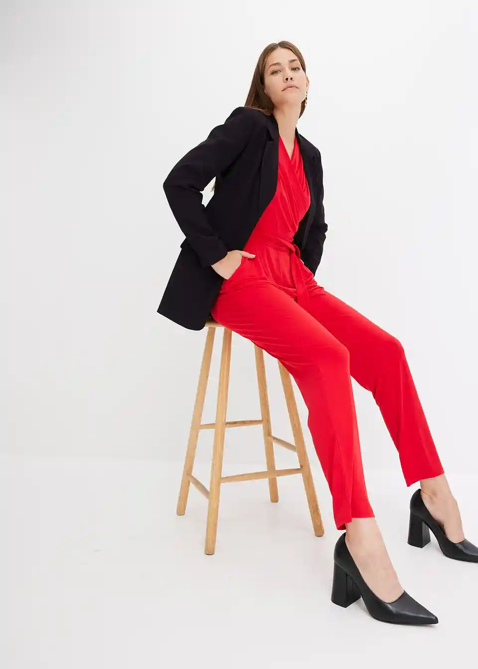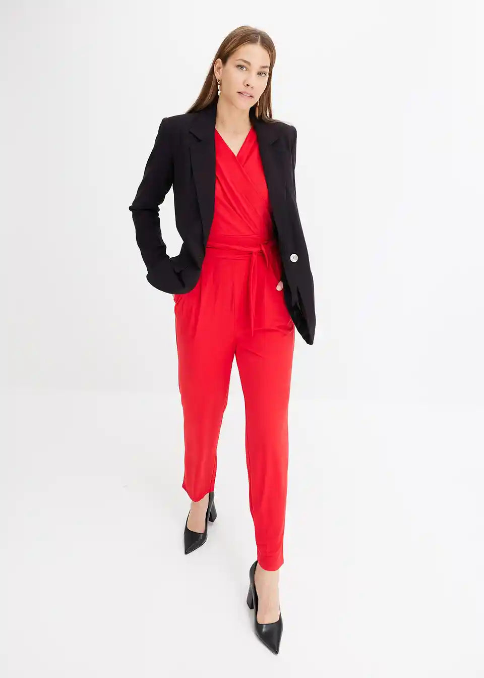 Seksi overal s izrezom u wrap izgledu i pojasom za vezanje