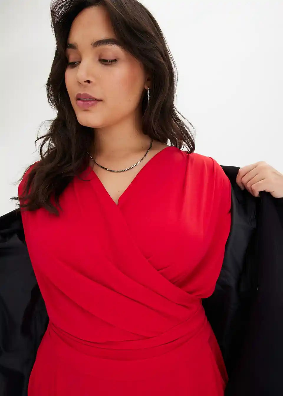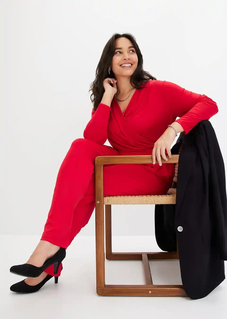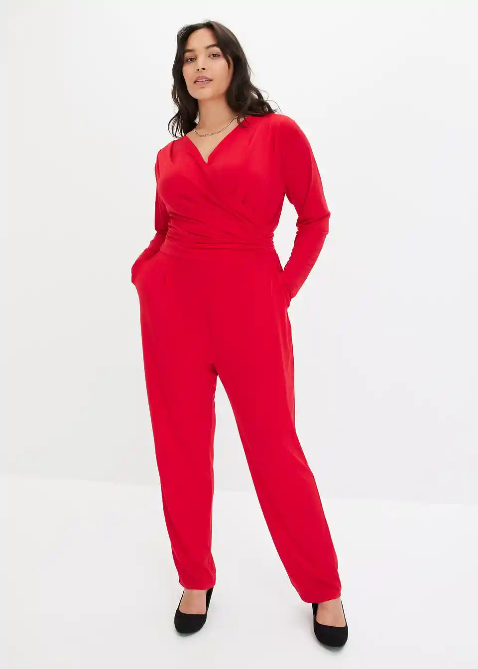 Seksi kombinezon s dekolteom u wrap izgledu i vezivnim remenom