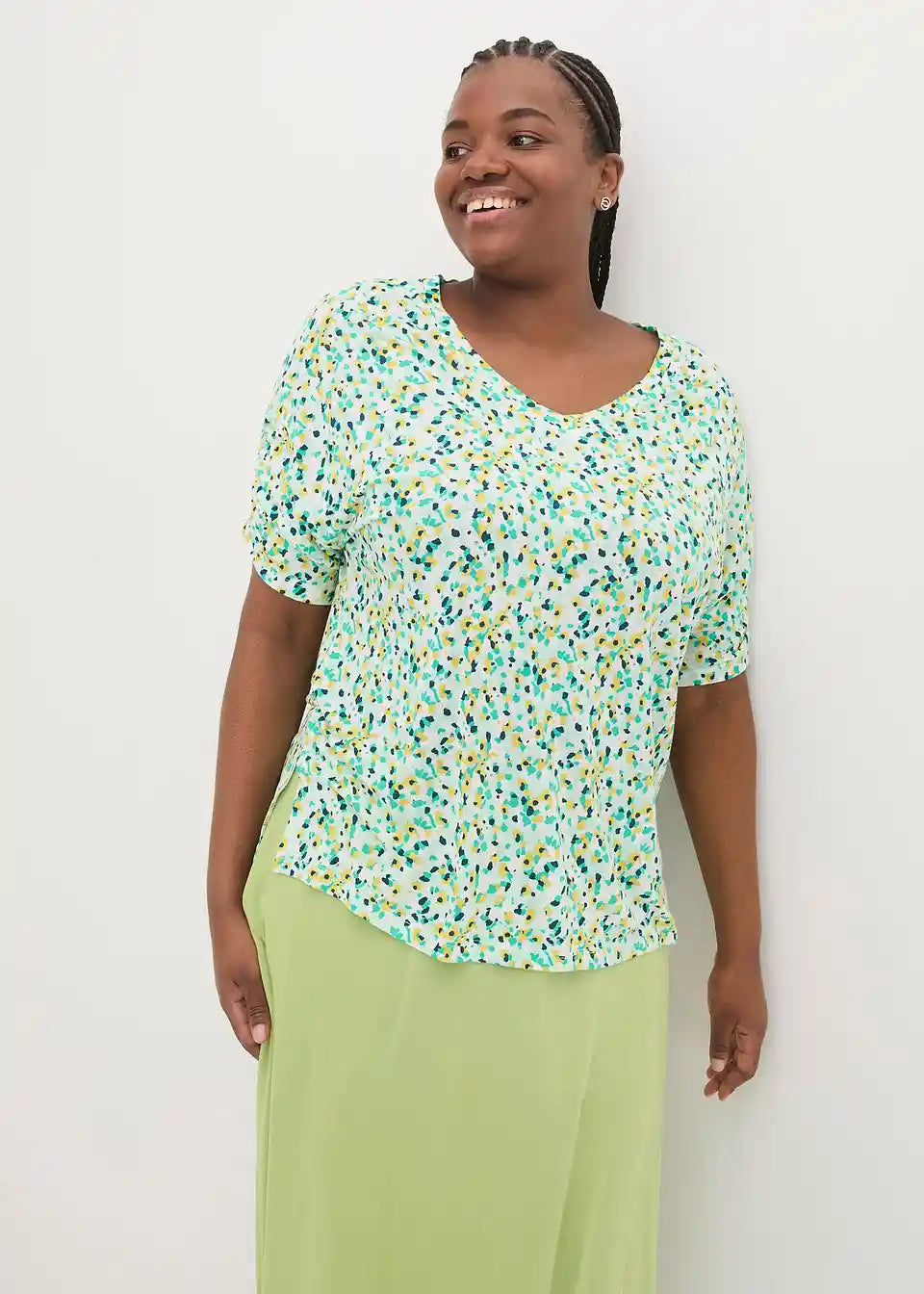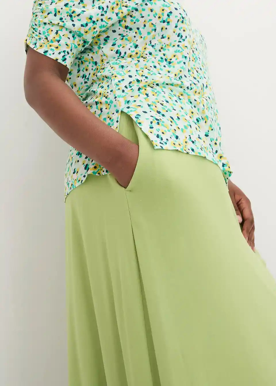 Jersey-lanena majica s modernim detaljem nabora na rukavu