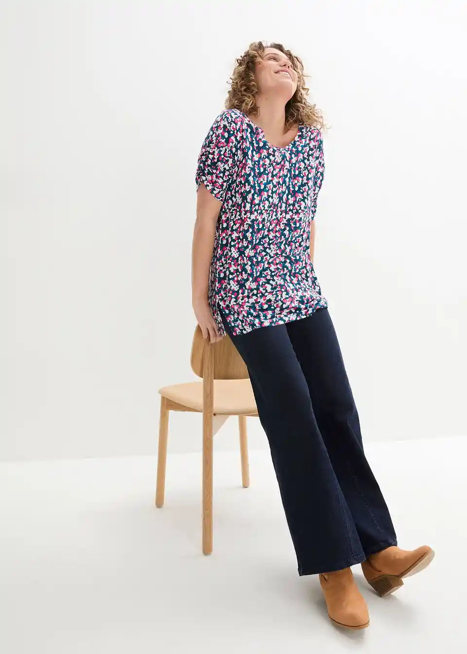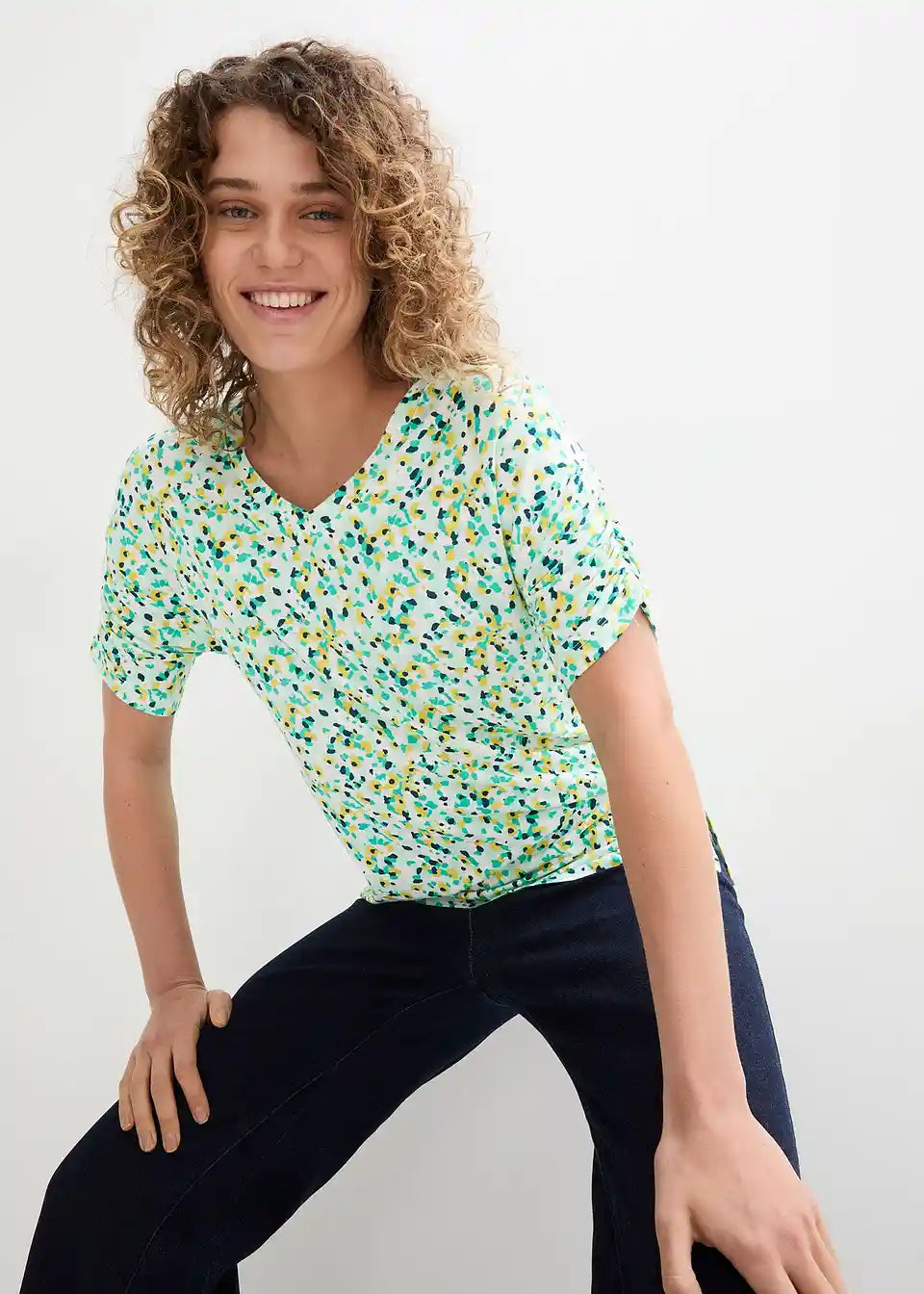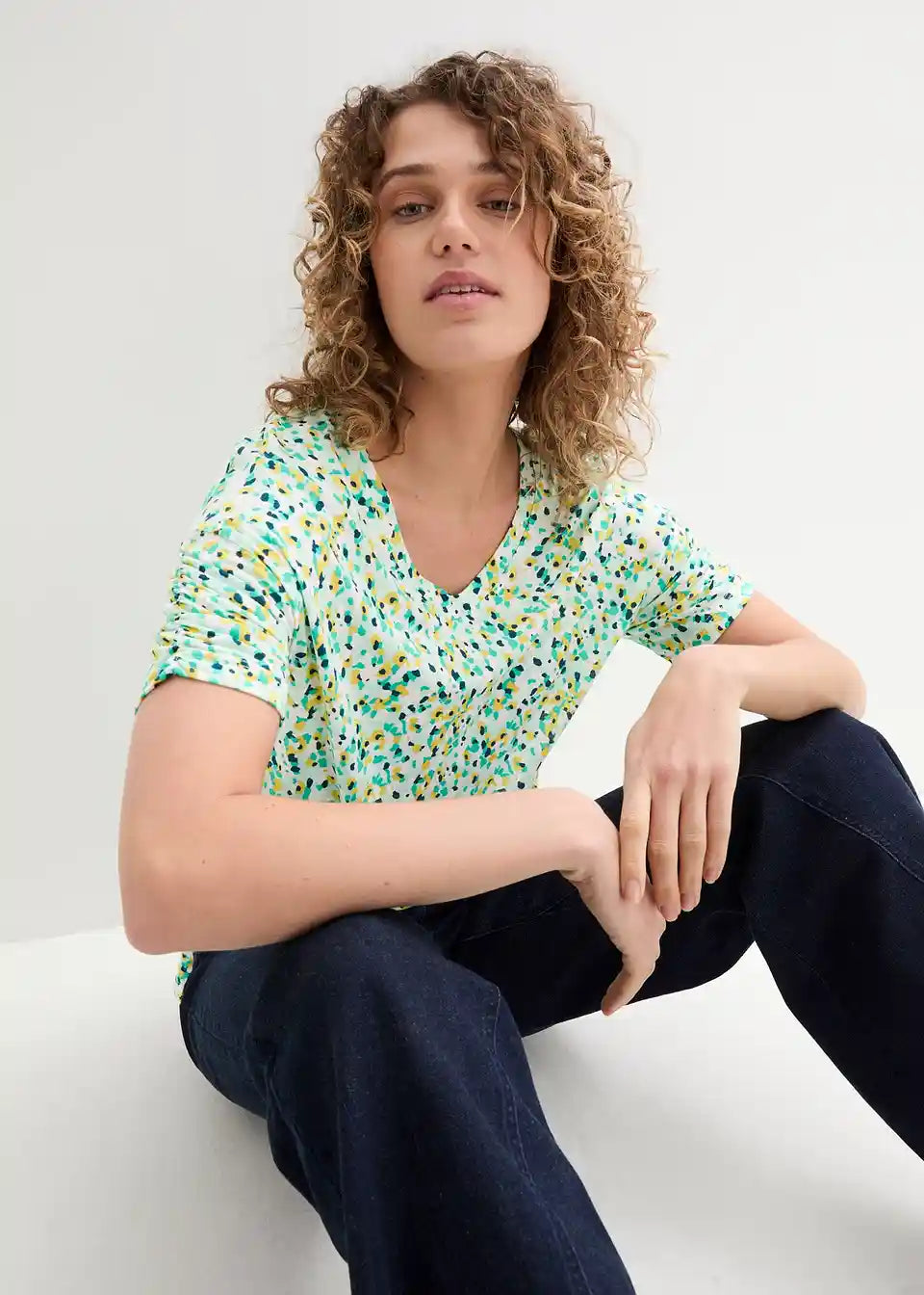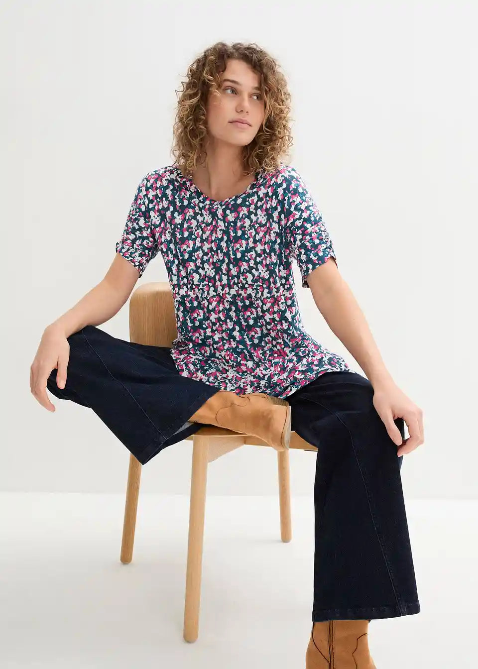 Jersey-lanena majica s modernim detaljem naboranja na rukavu