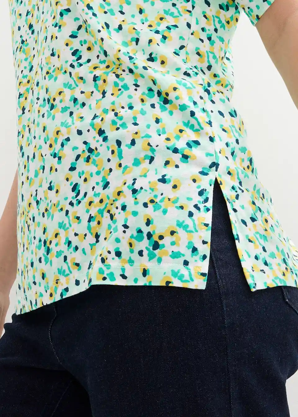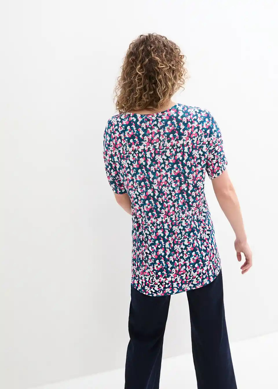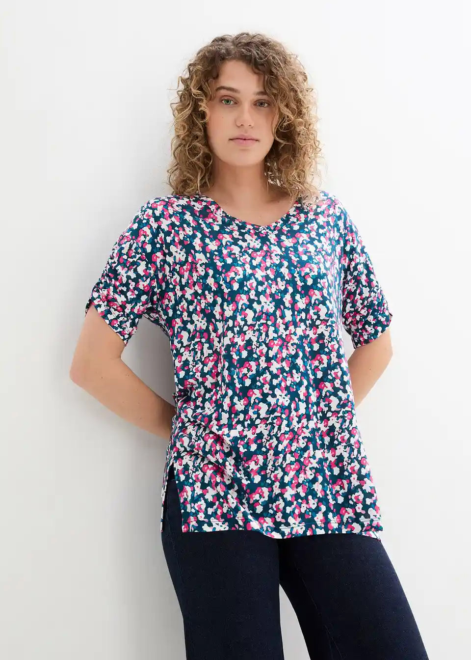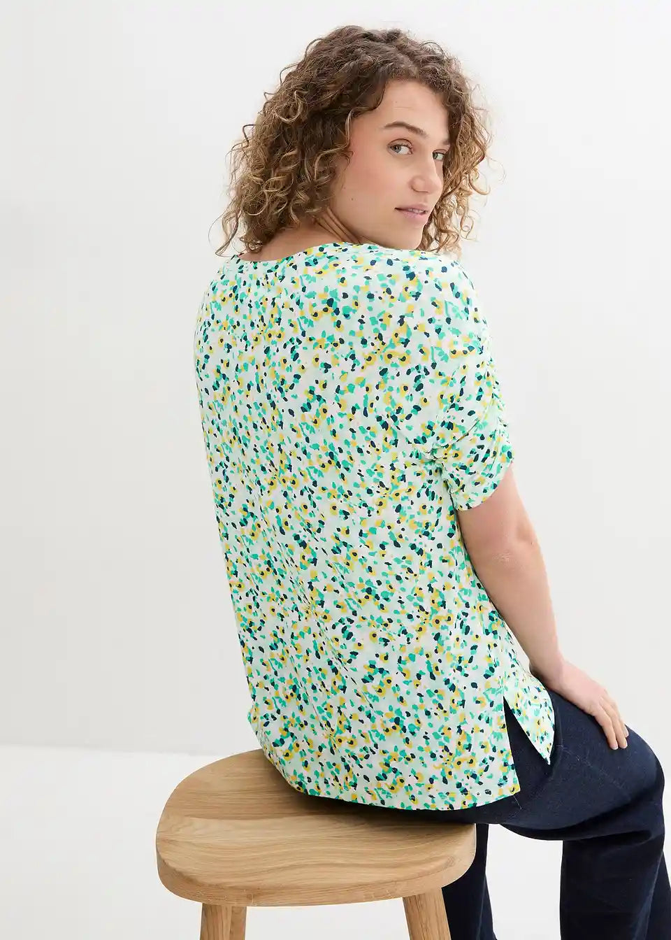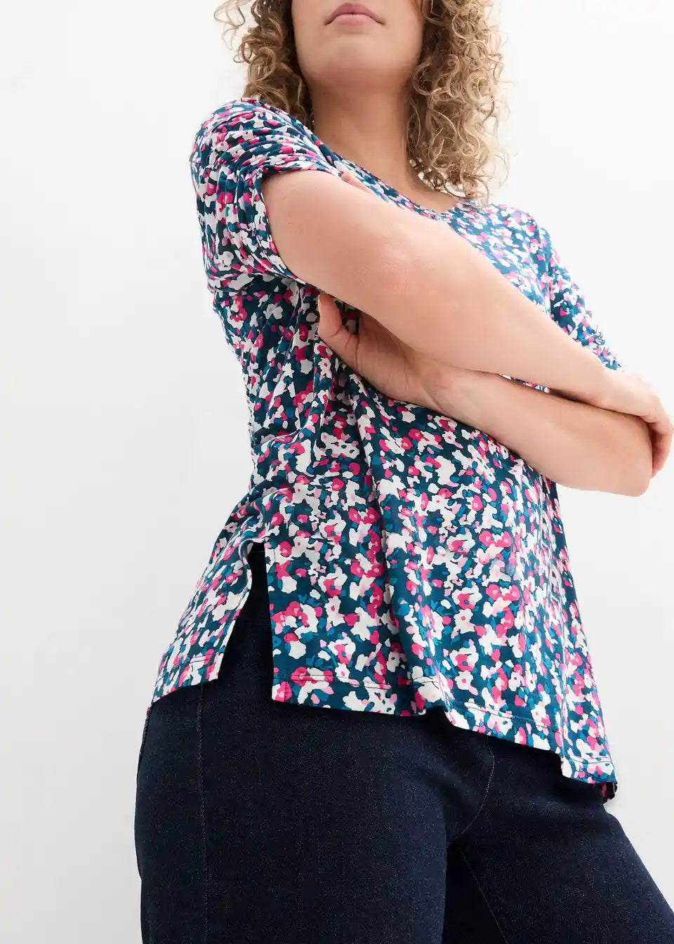 Jersey-lanena majica s modernim detaljem naboranja na rukavu