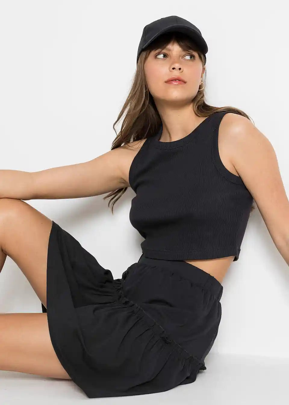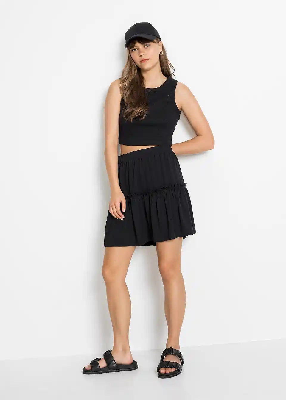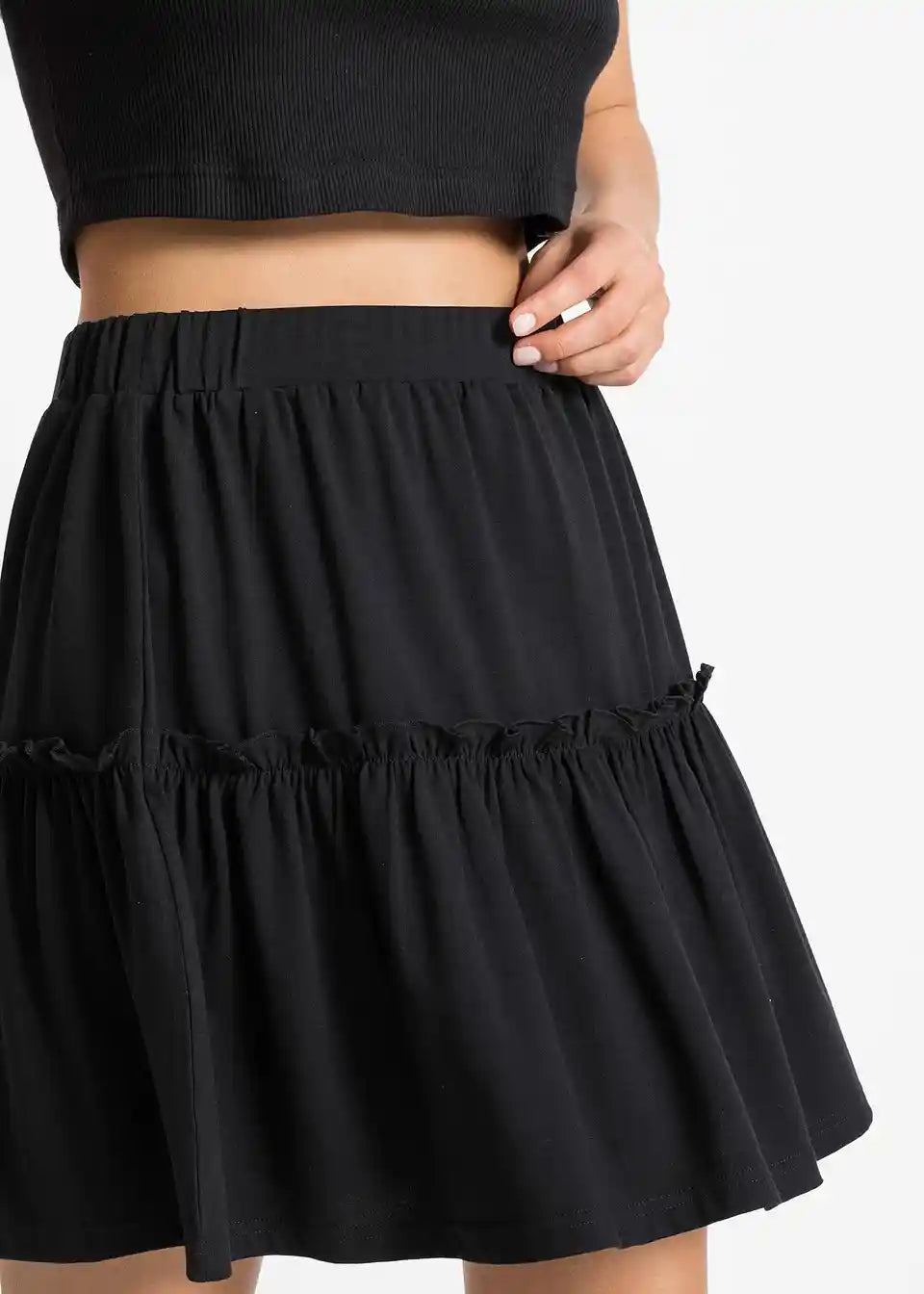 Kratka suknja od majice s volanom i udobnim pojasom