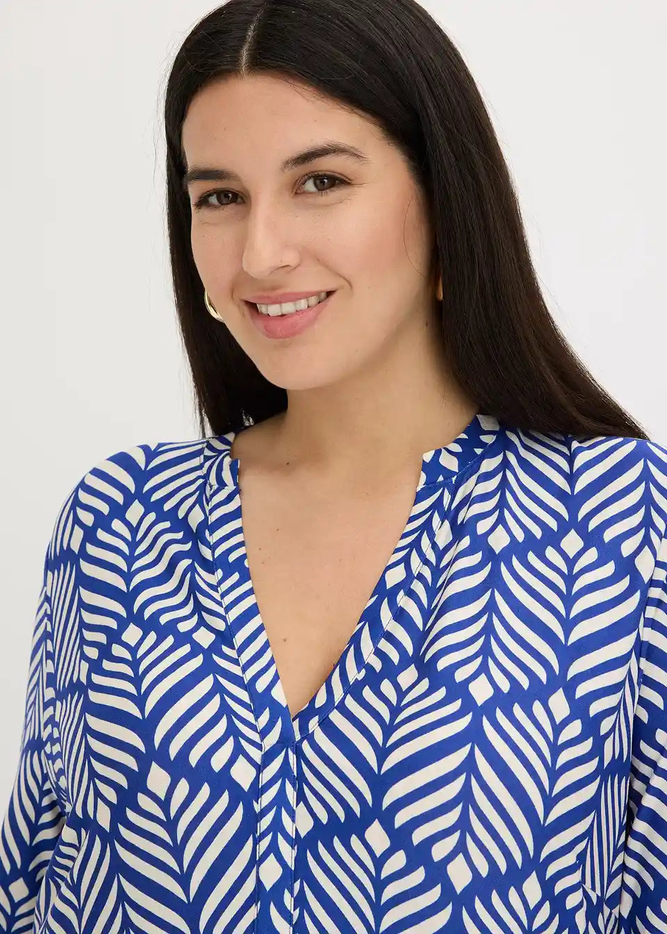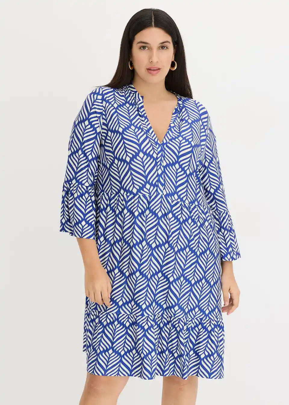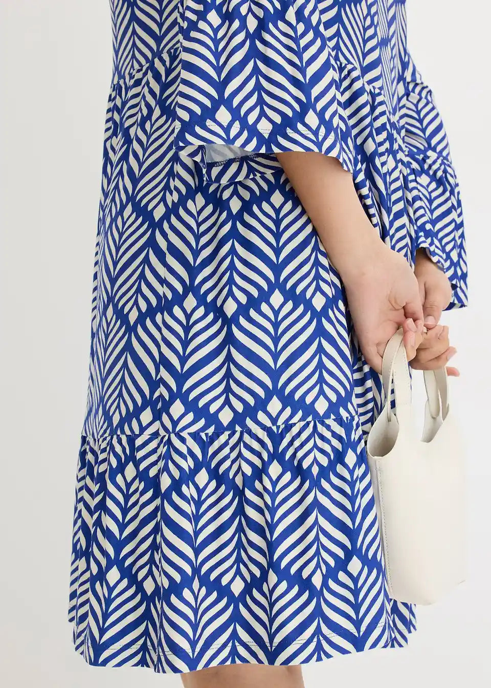 kratka tiskana jersey tunika haljina od mekanog viskoznog miksa s volanima na rukavima