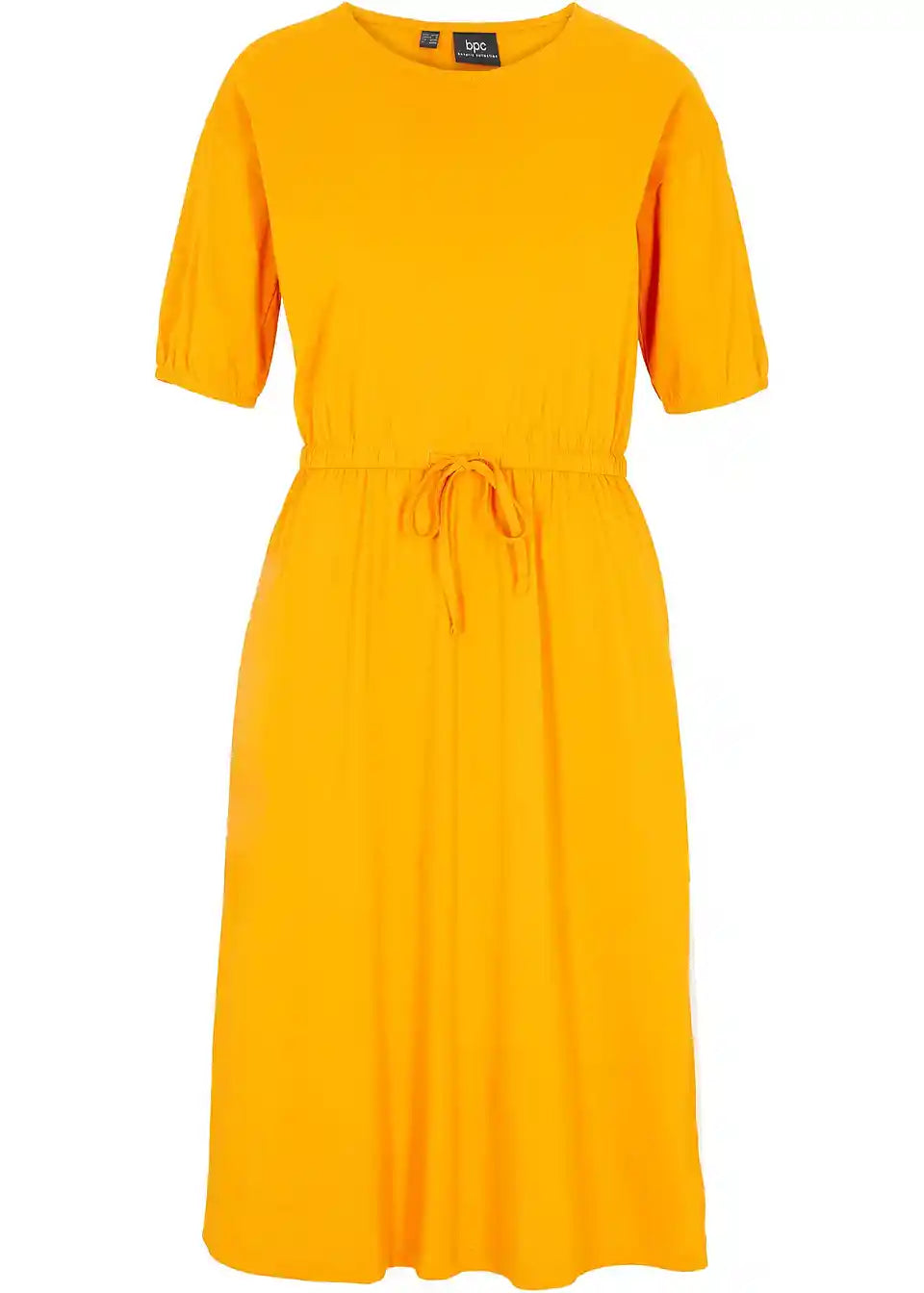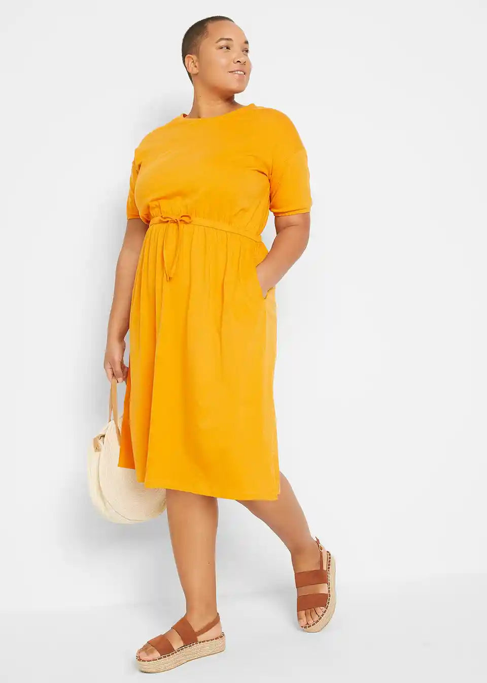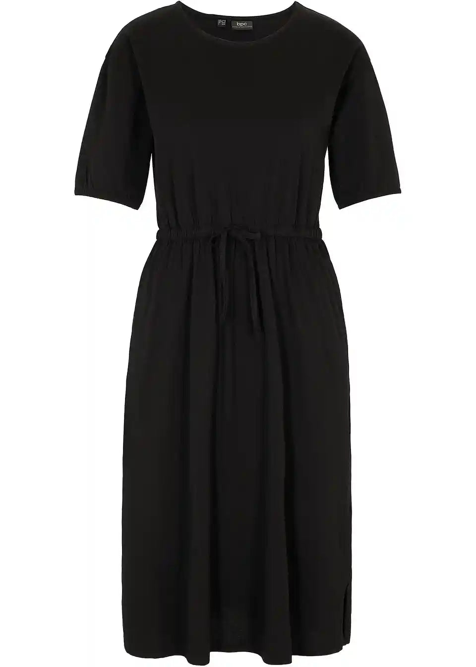 Moderna pamučna haljina s naborima i džepovima u midi duljini