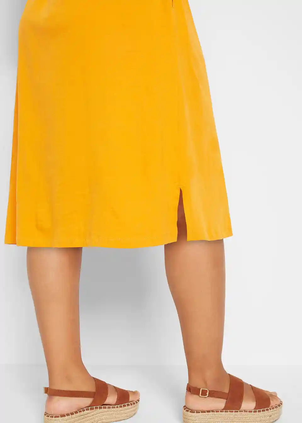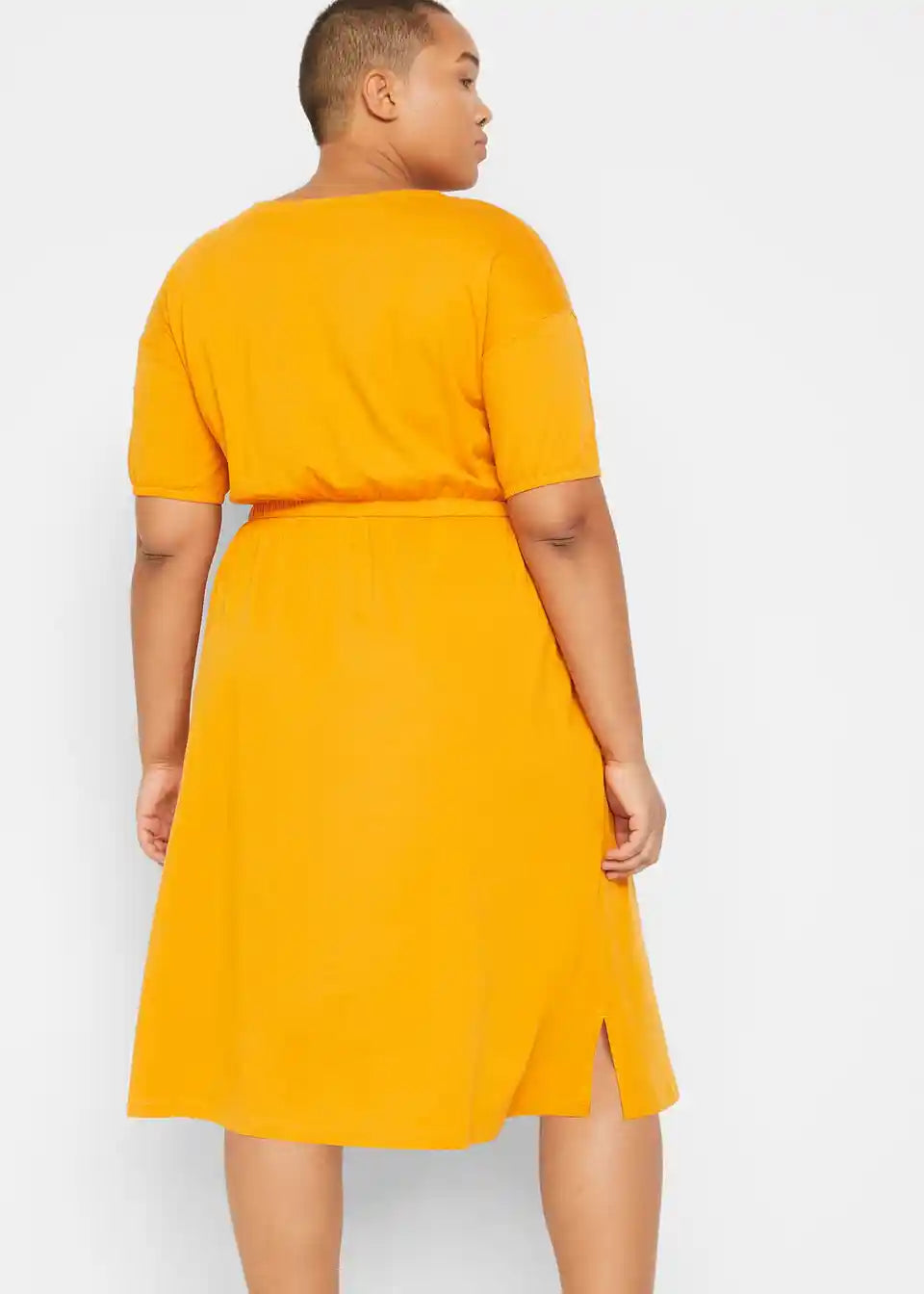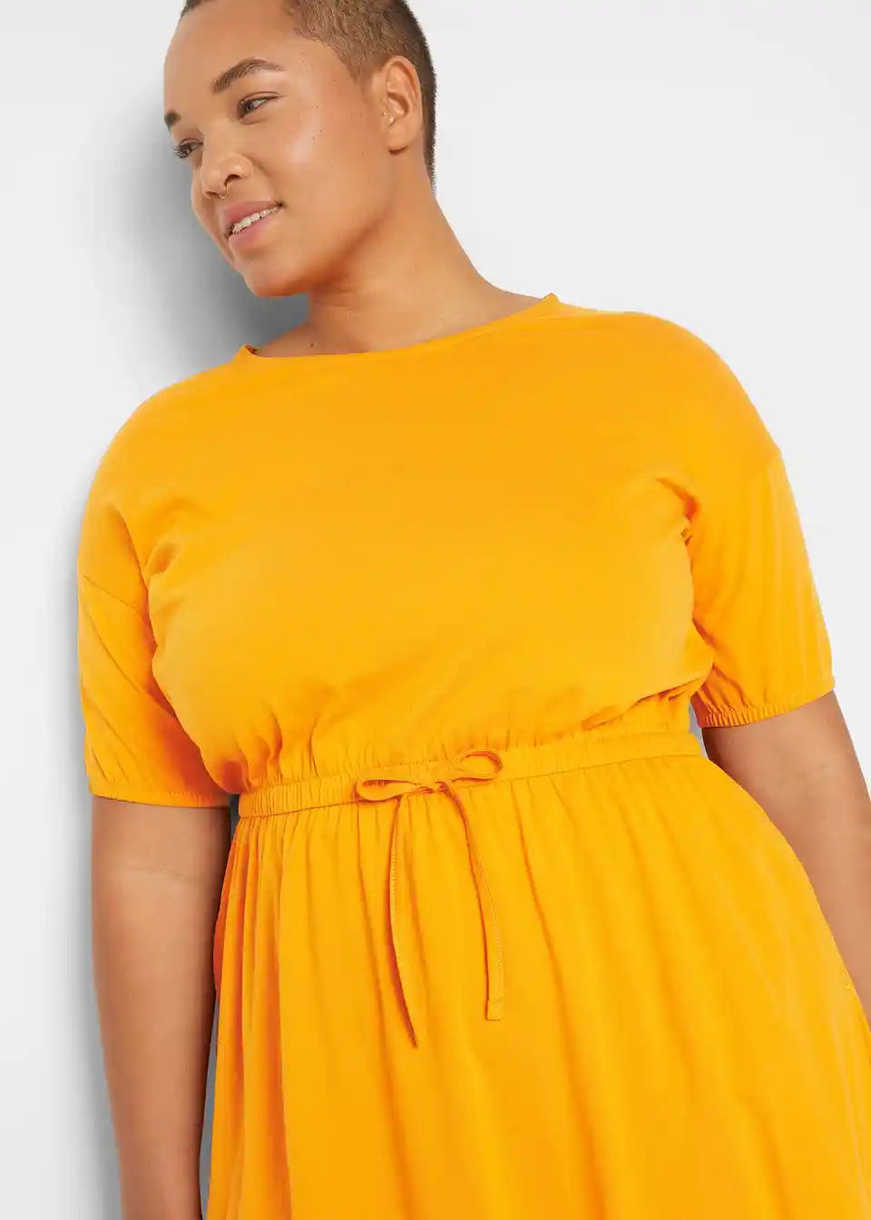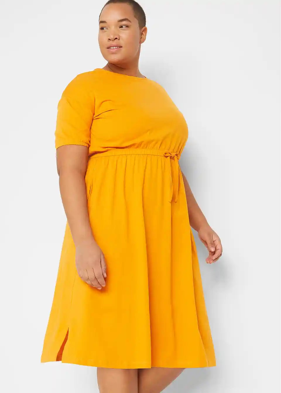 Moderna pamučna haljina s naborima i džepovima u midi duljini