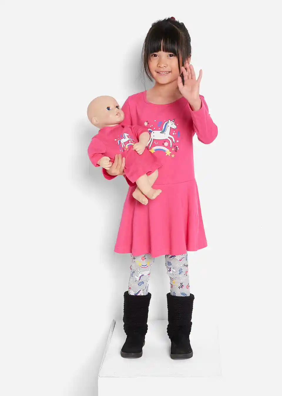 Materijal:gornji materijal: haljina + haljina za lutku: 100% pamuk, tajice: 90% pamuk, 5% elastan, 5% viskoza