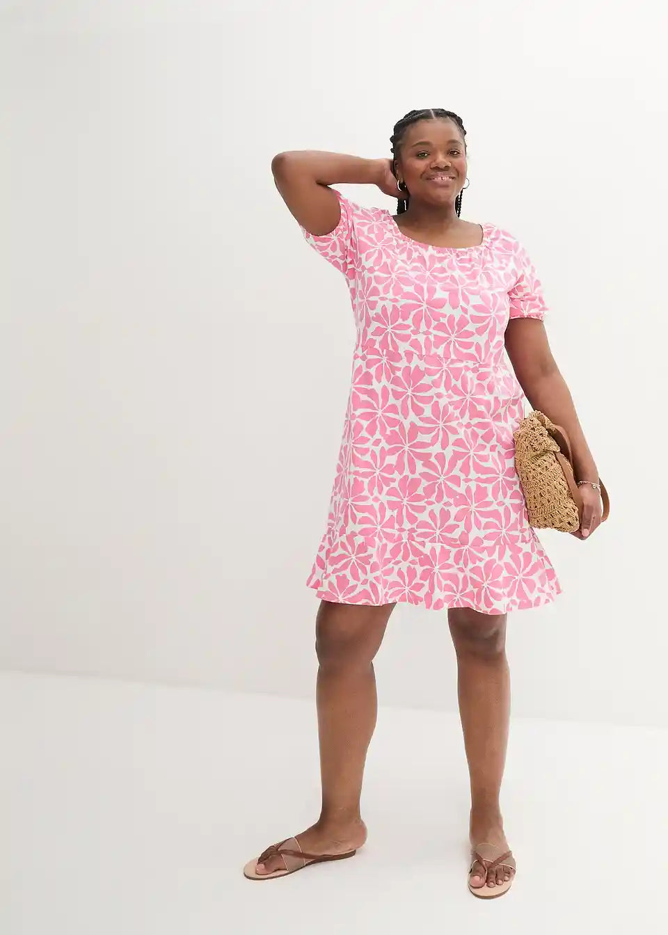 Jerseykleid do iznad koljena s kvadratnim izrezom, laskava figuri zahvaljujući krojnim šavovima