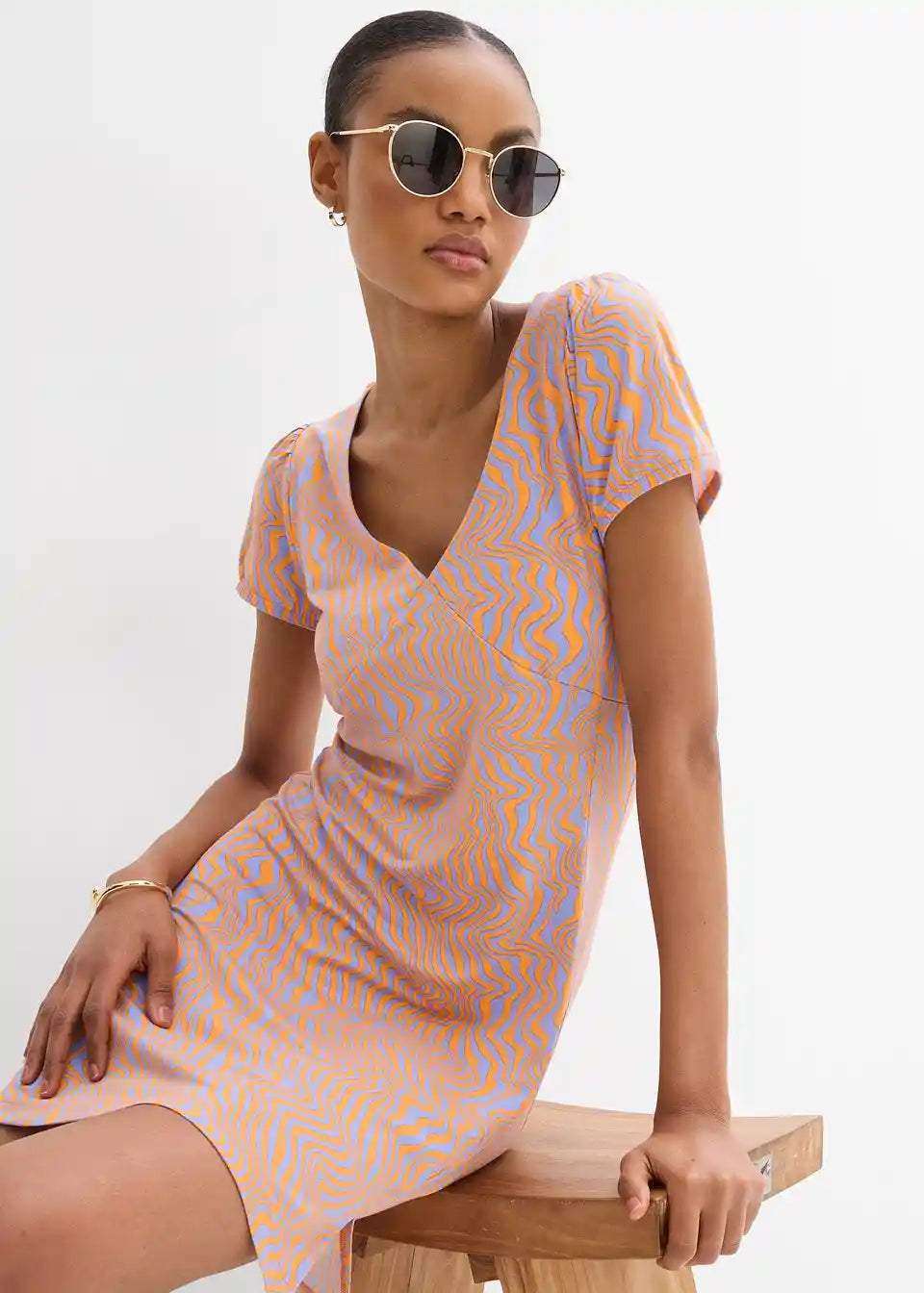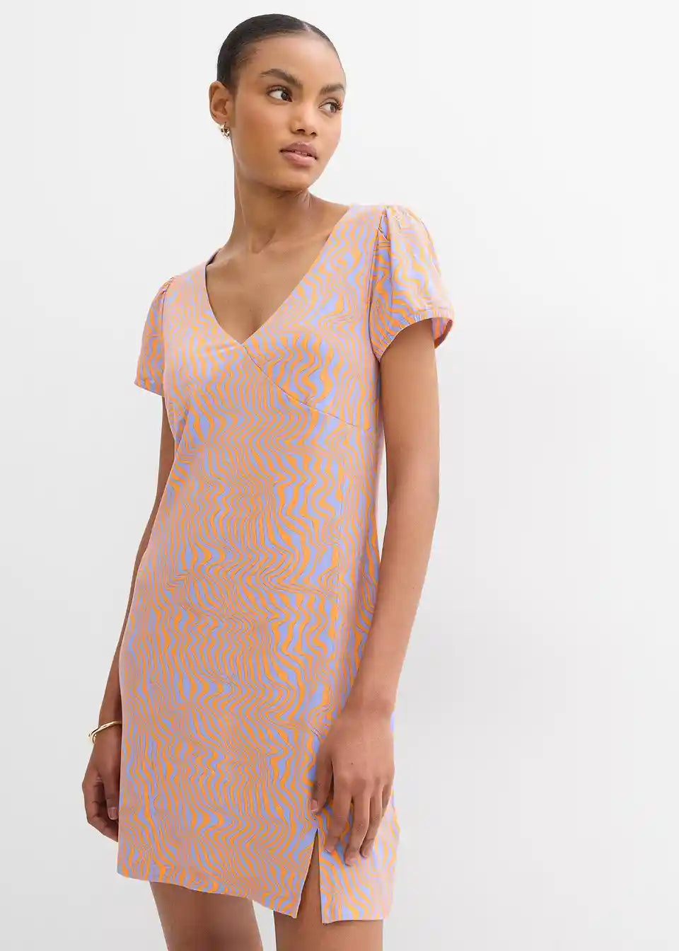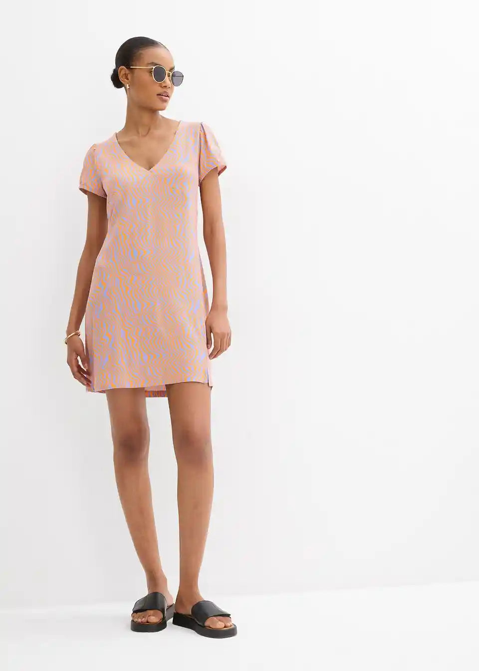 Kratka jerseykleid od lepršavog viskoznog miksa s V-izrezom