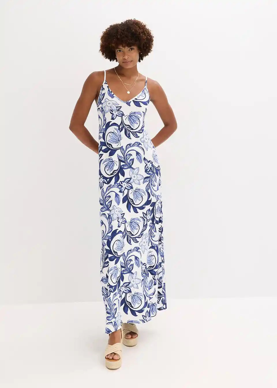 ljetna jersey haljina od meke mješavine viskoze s cvjetnim printom i spaghetti naramenicama
