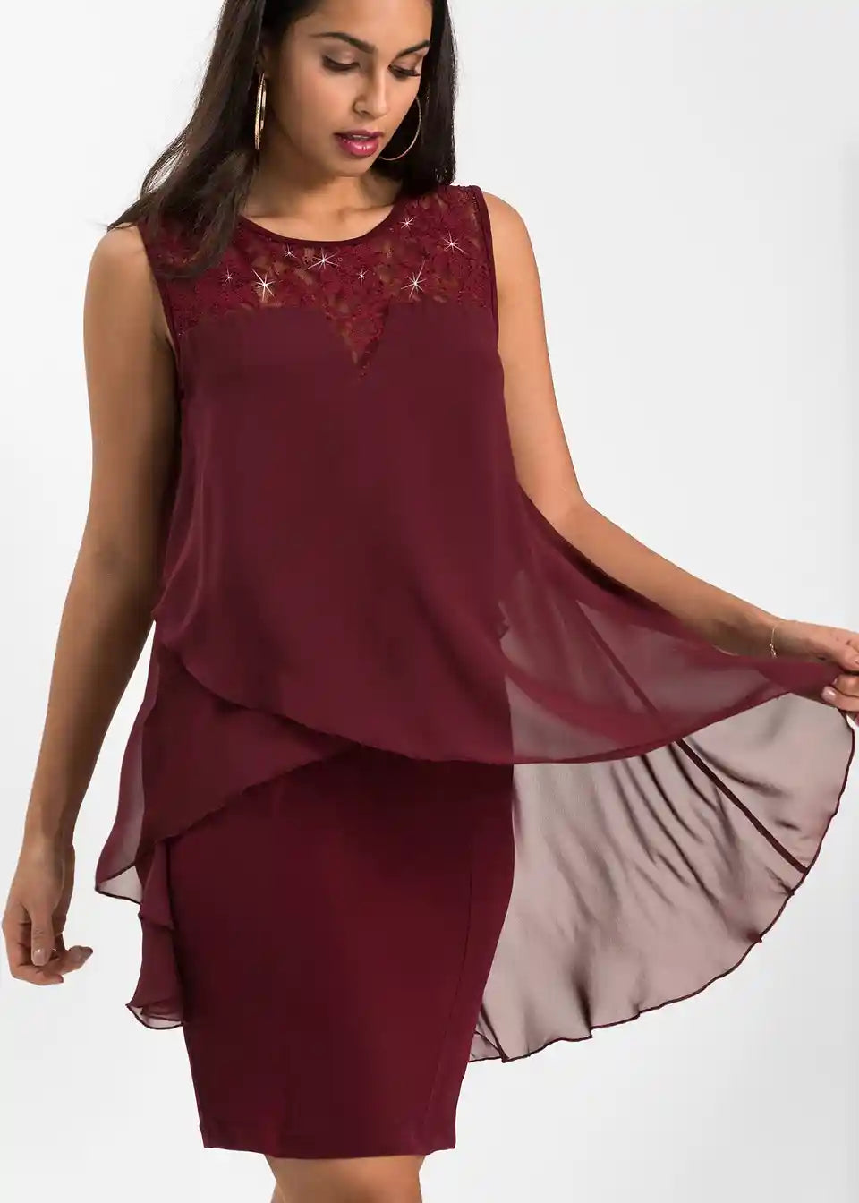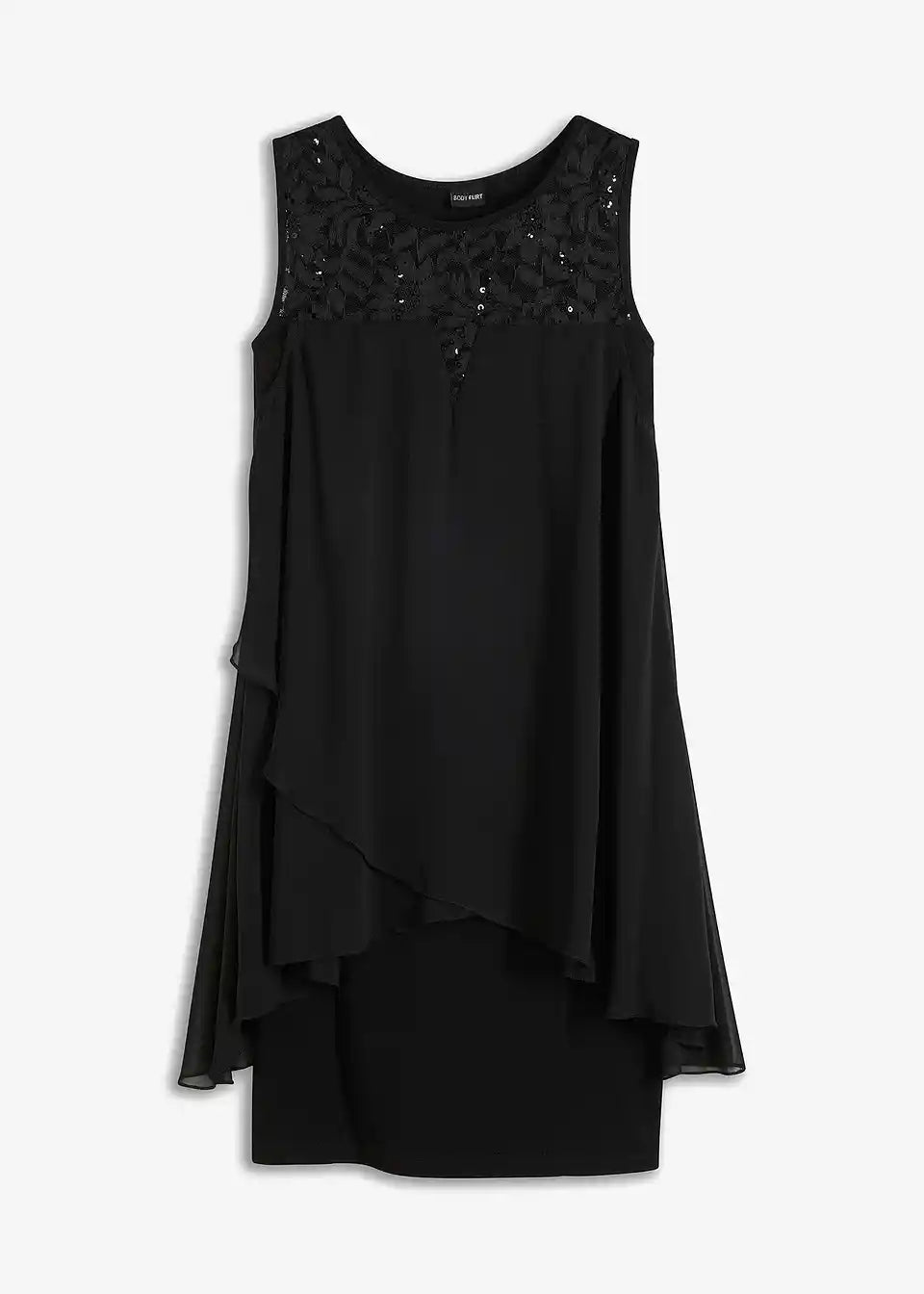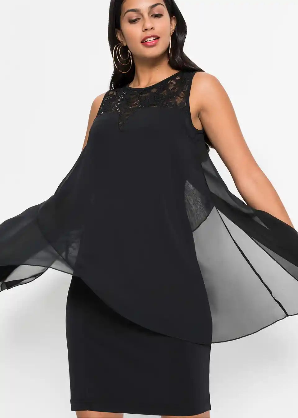 San od mekane jerse tkanine, laganog šifona i fine čipke je ova ženstvena haljina marke BODYFLIRT. Kratak dio suknje je kroja koji prati tijelo, dok gornji dio nježno prati žensku siluetu. Ispod okruglog izreza očarava ova moderna haljina finom čipkom i svjetlucavim ljuskicama. Haljina od jersey i šifon materijala najbolje izgleda uz cipele s visokim potpeticama.