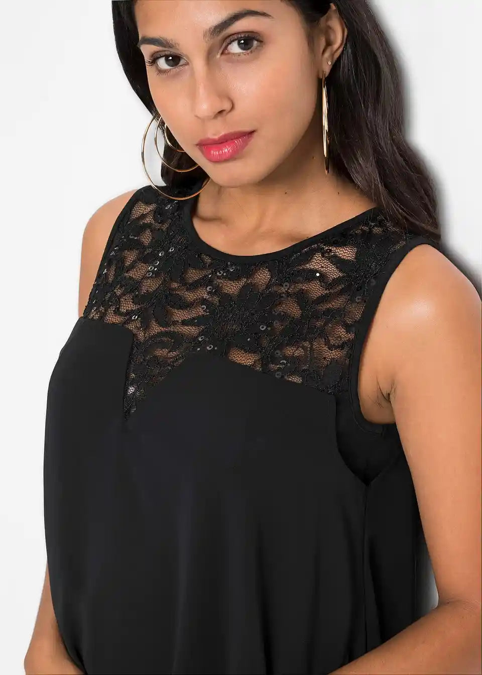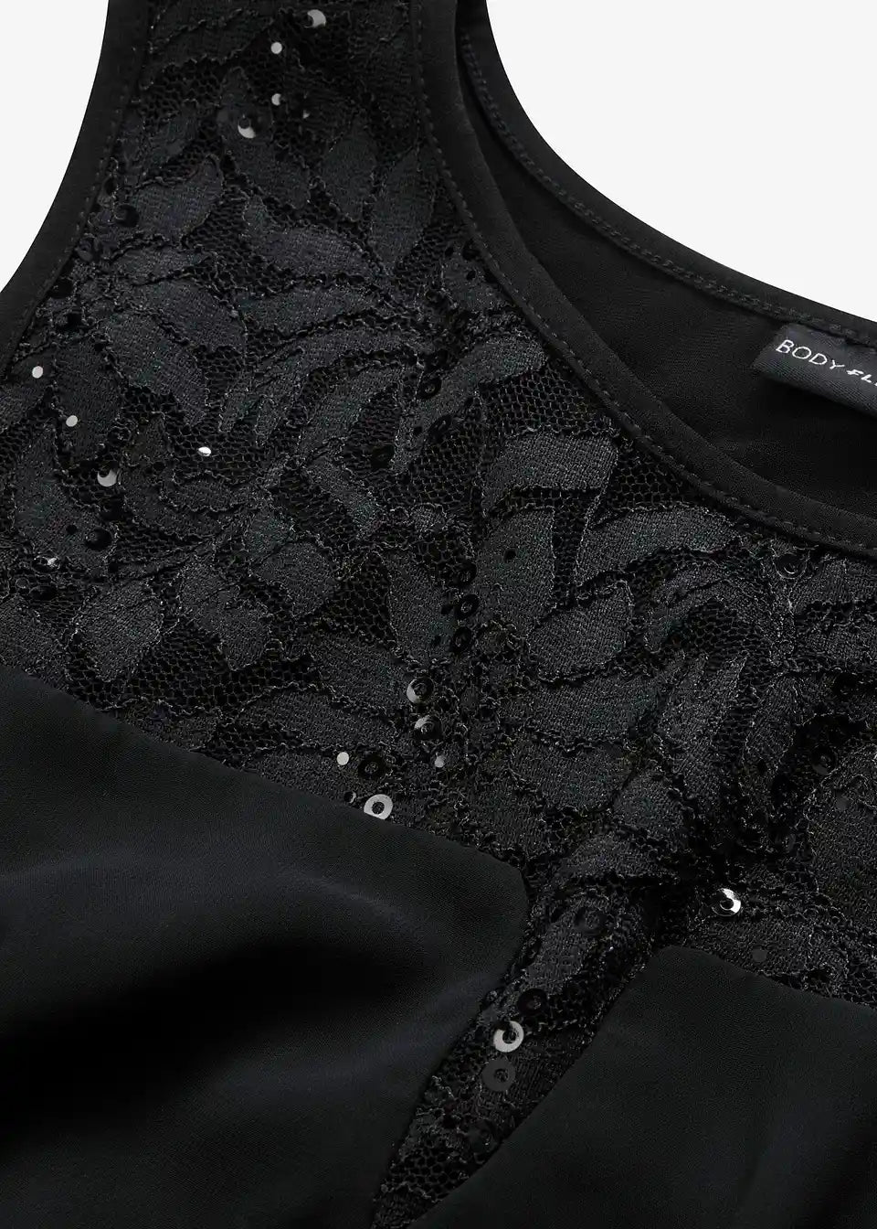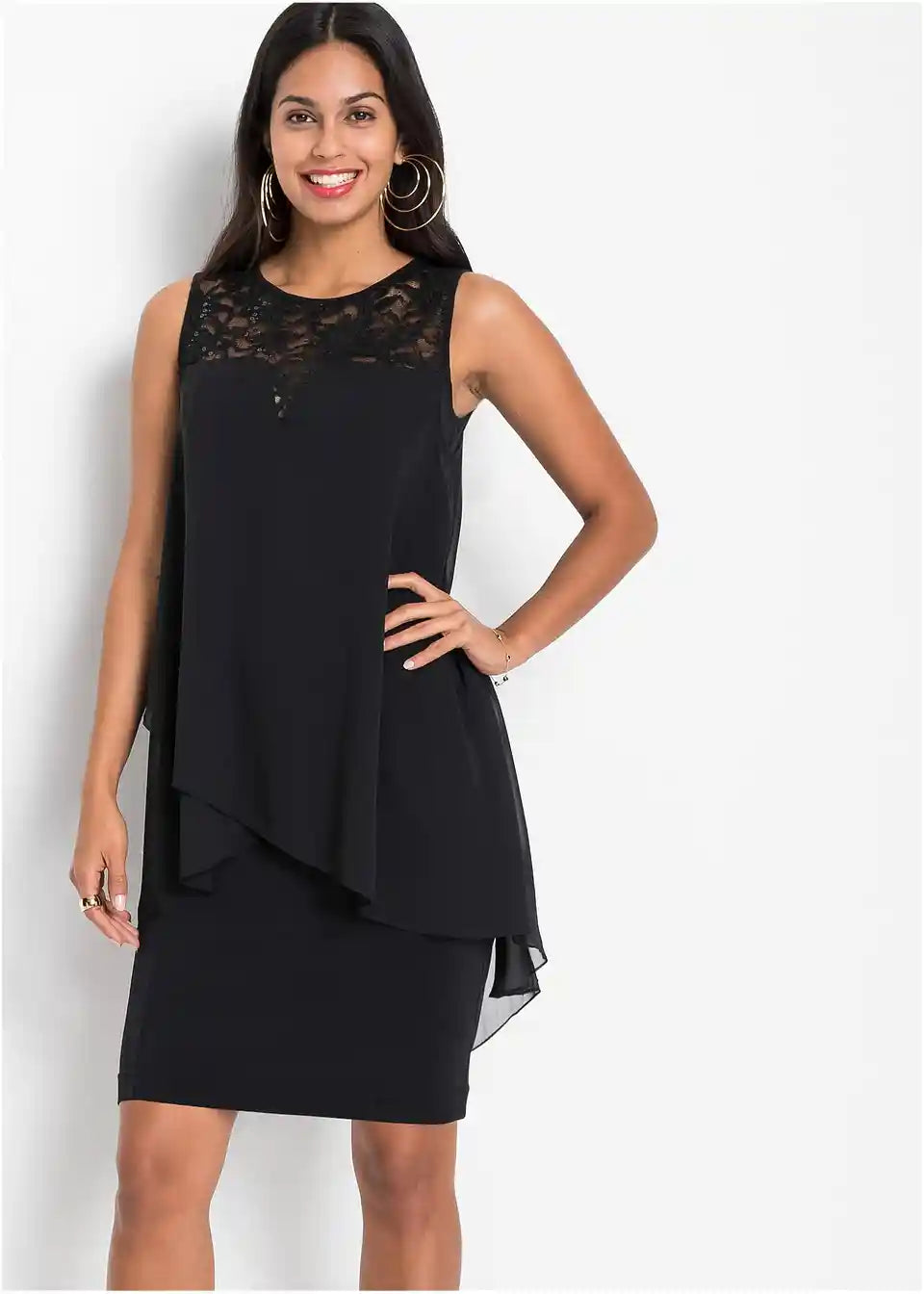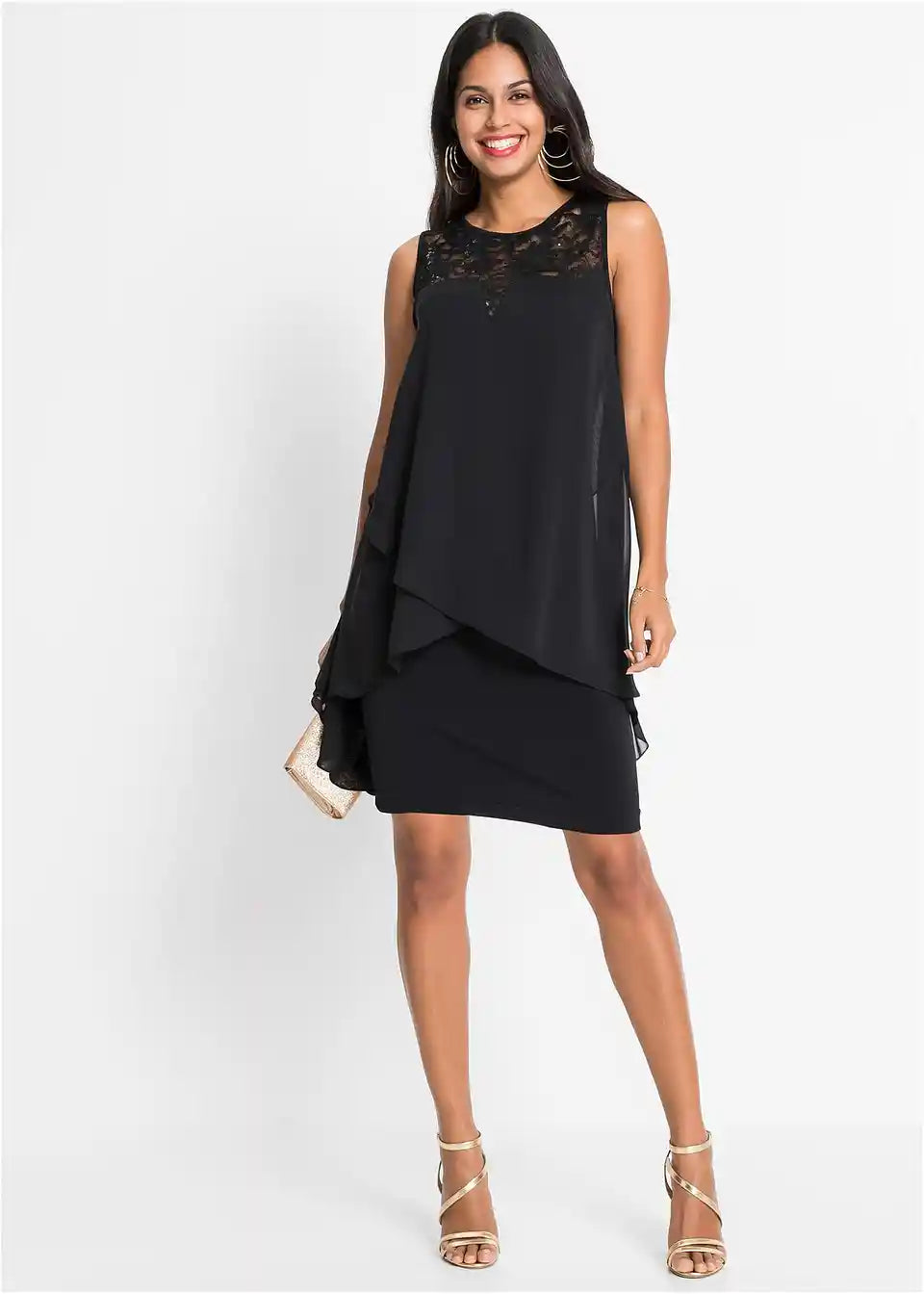 San od mekane jerse tkanine, laganog šifona i fine čipke je ova ženstvena haljina marke BODYFLIRT. Kratak dio suknje je kroja koji prati tijelo, dok gornji dio nježno prati žensku siluetu. Ispod okruglog izreza očarava ova moderna haljina finom čipkom i svjetlucavim ljuskicama. Haljina od jersey i šifon materijala najbolje izgleda uz cipele s visokim potpeticama.