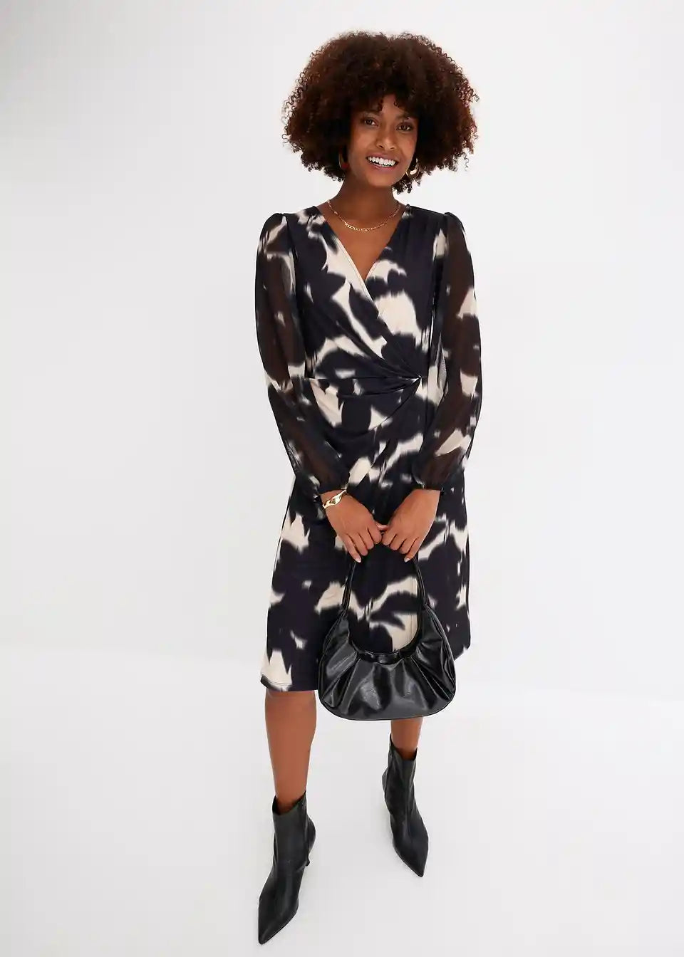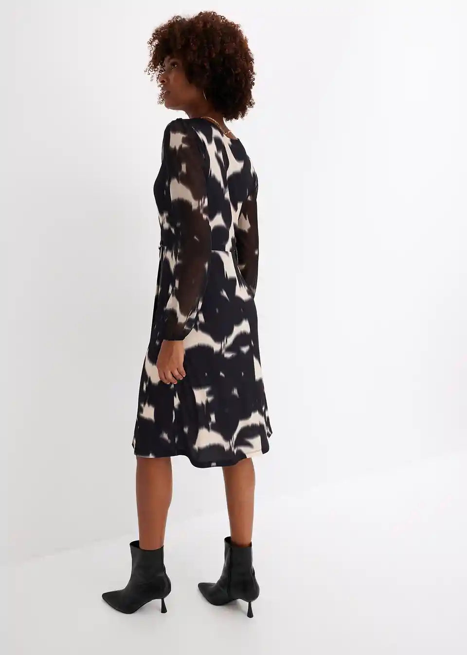 Moderno i ženstveno: jerseykleid s prozračnim mrežastim rukavima i drapiranjem u struku
