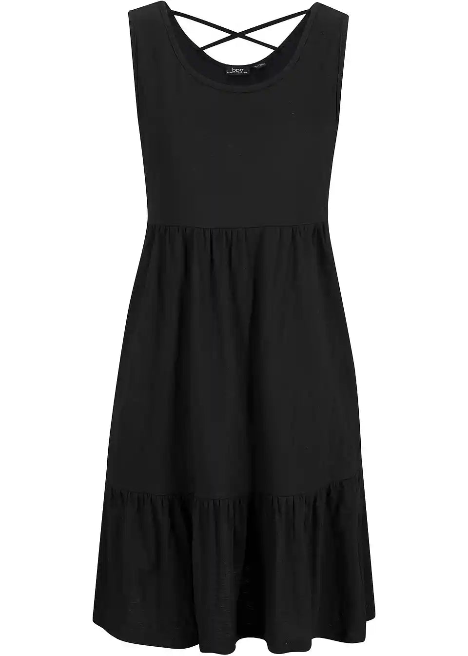 Pamučna haljina s dekorativnim izrezom na leđima i volanima na rubu