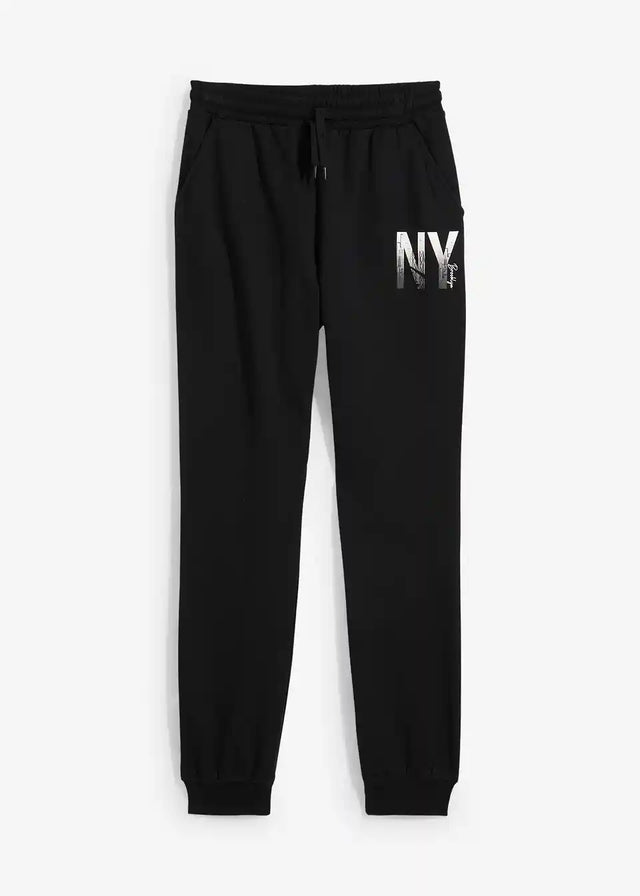 Dječje jogging hlače s elastičnim pojasom i cool printom na nozi