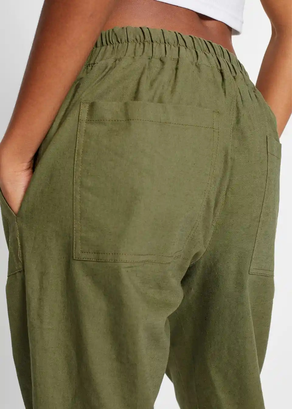 Udobne hlače s elastičnim pojasom i našivenim džepovima